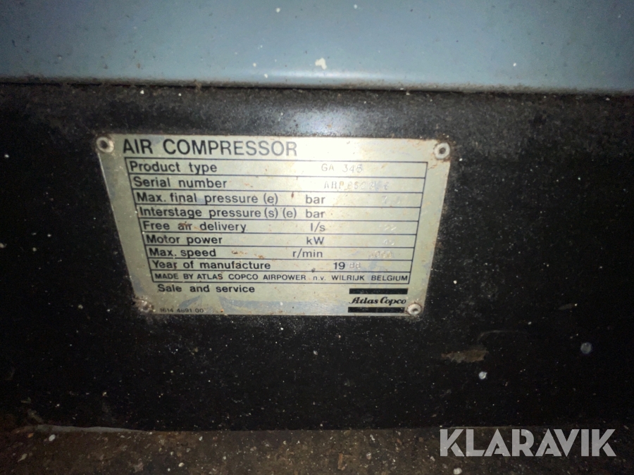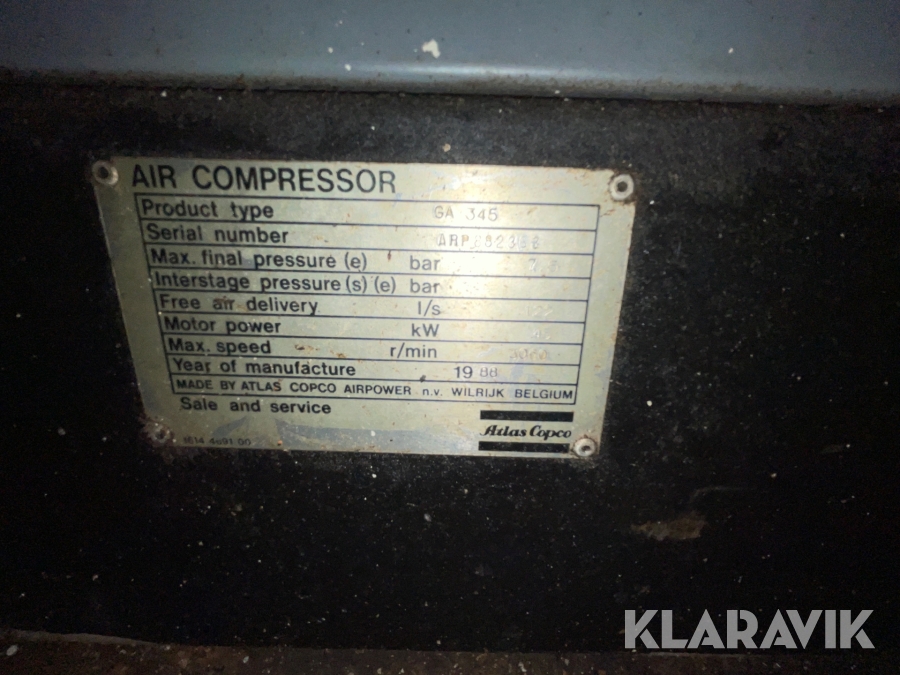Kompressor Atlas Copco GA345-7,5 med tillhörande torkutrustning