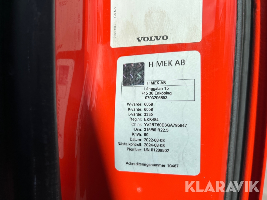Tippbil Volvo FH540 med kärra