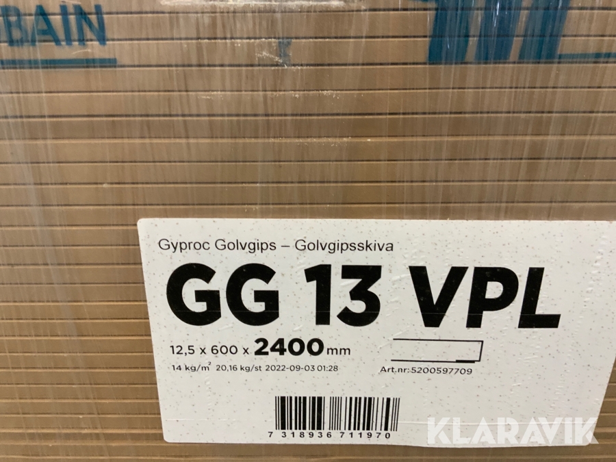 Golvgips Gyproc 12,5x600x2400 mm. 800 st