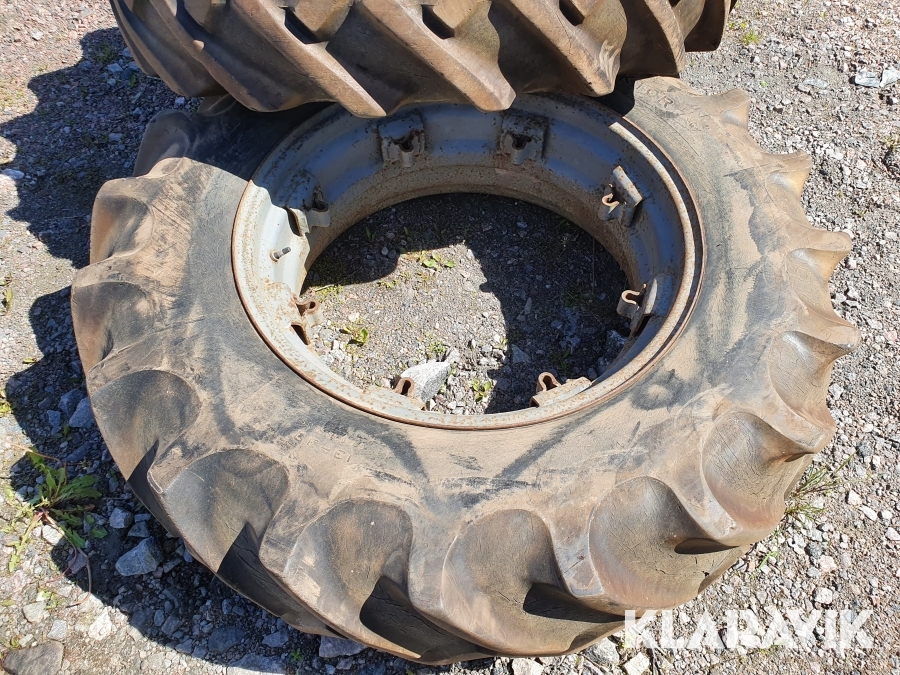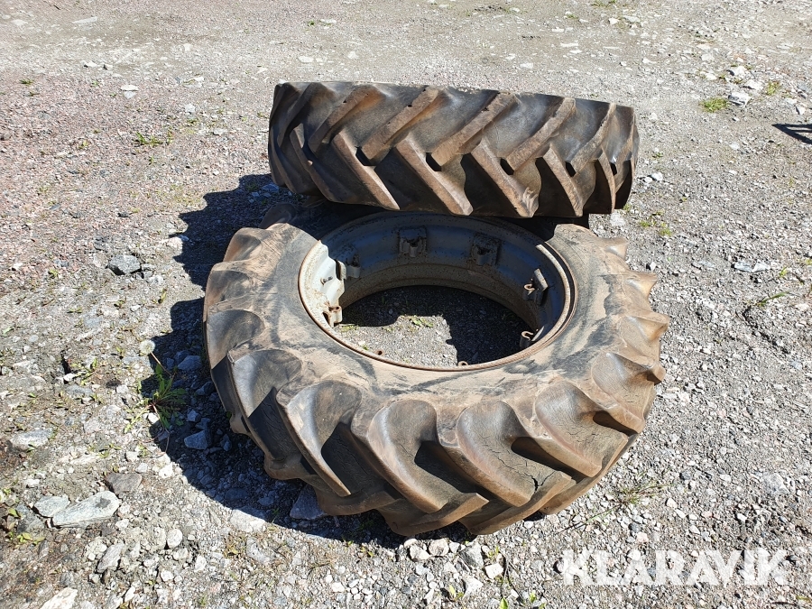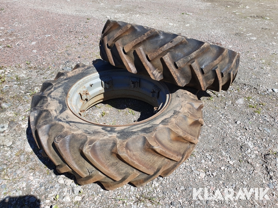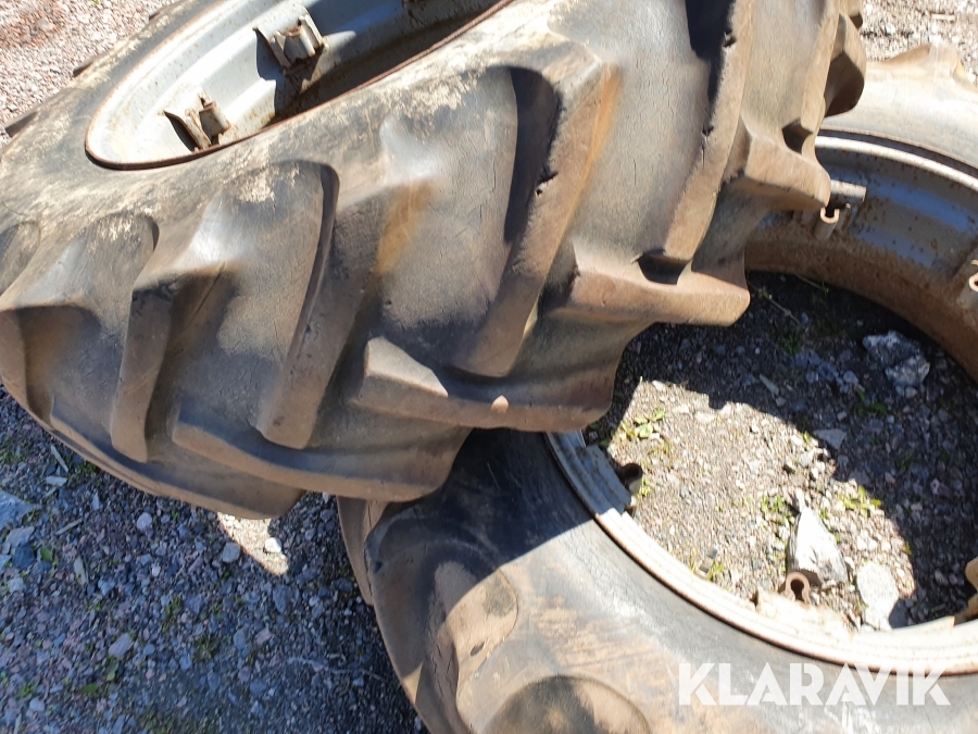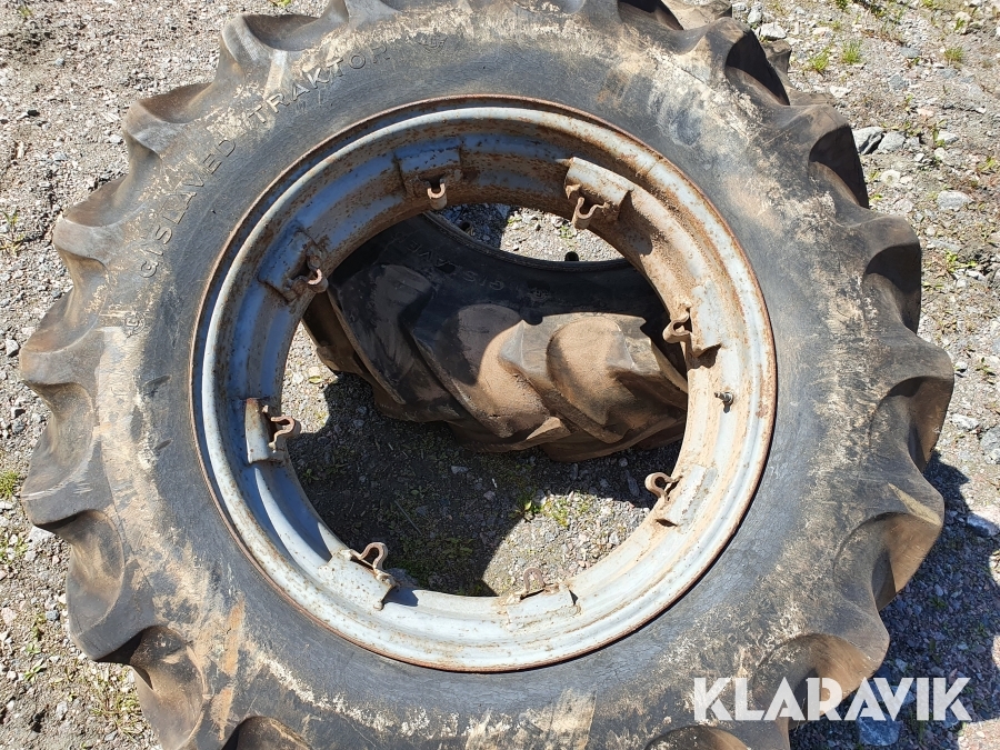 2 st däck med fälgar som passar till Massey Ferguson b.la modeller som 65 mfl.
