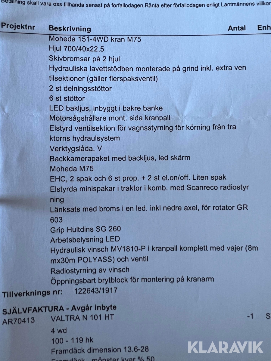 Traktor Valtra N134 Direct Unlimited med Moheda 151 4WD