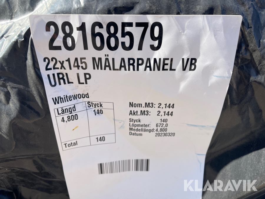 Mälarpanel 22x145 4,8m 140st ca 95kvm