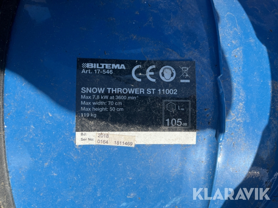 Snöslunga Biltema ST 11002 med snökedjor