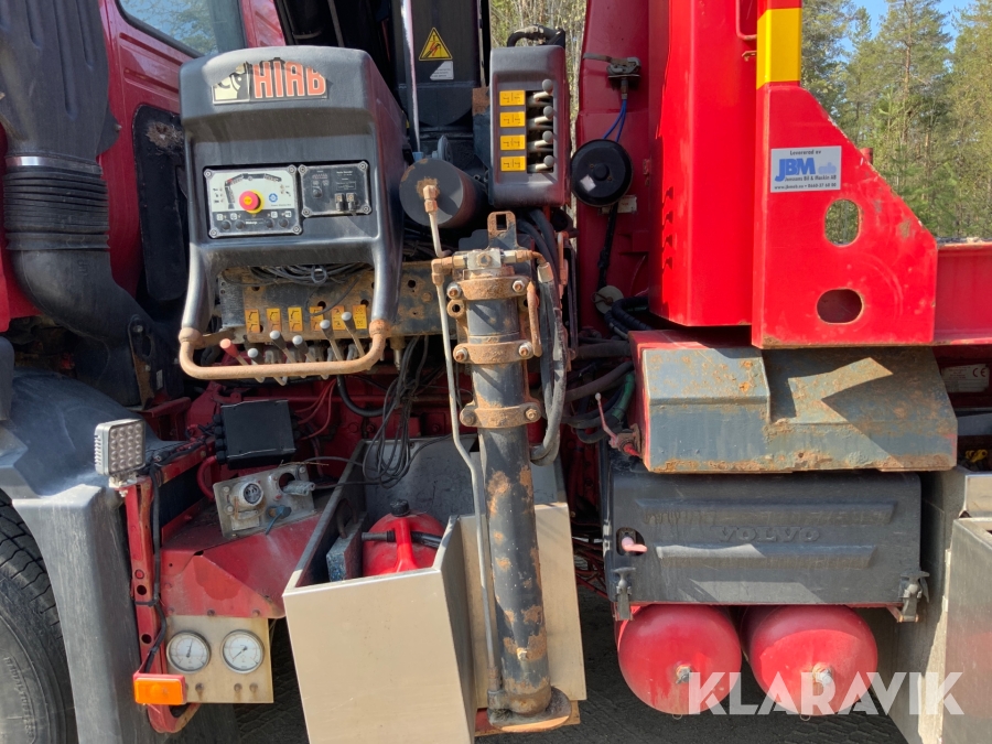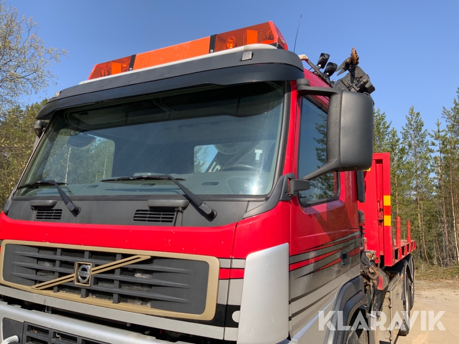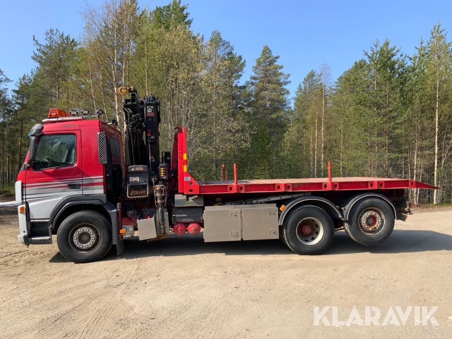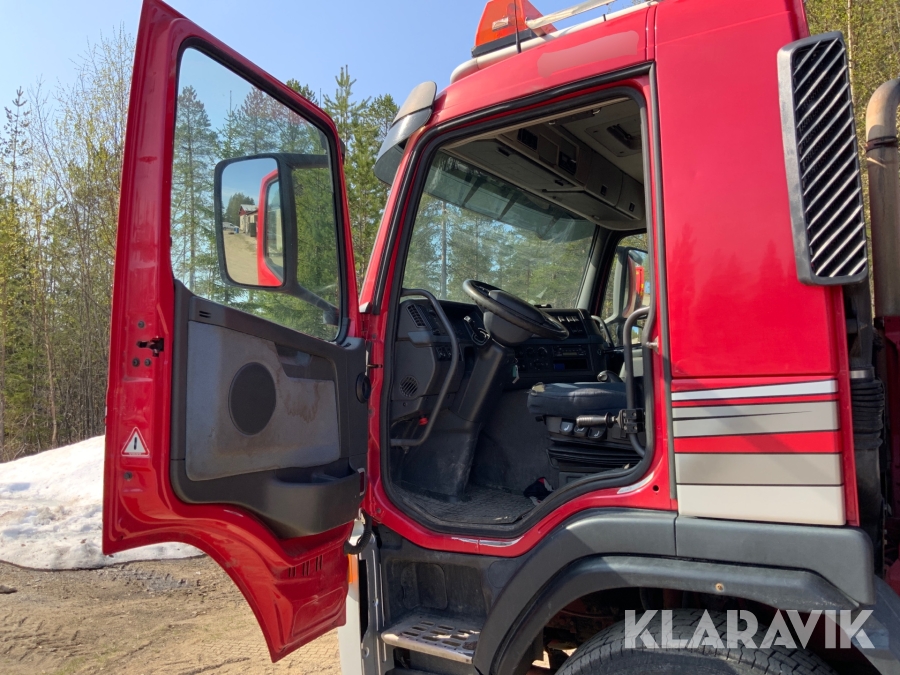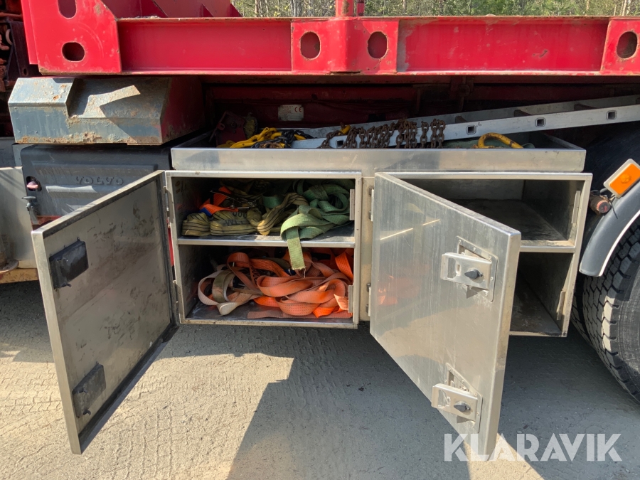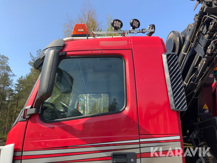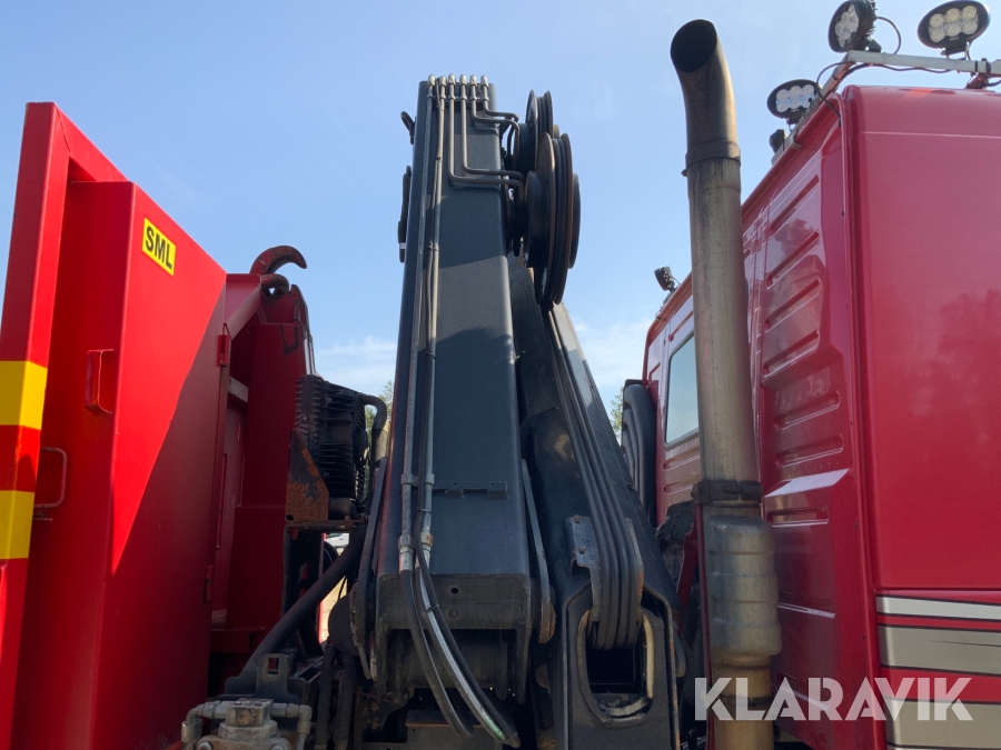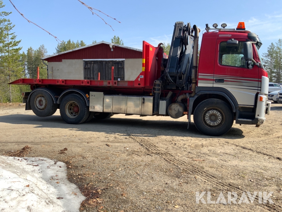 Kranbil Volvo FM340 med lastväxlare och två flak