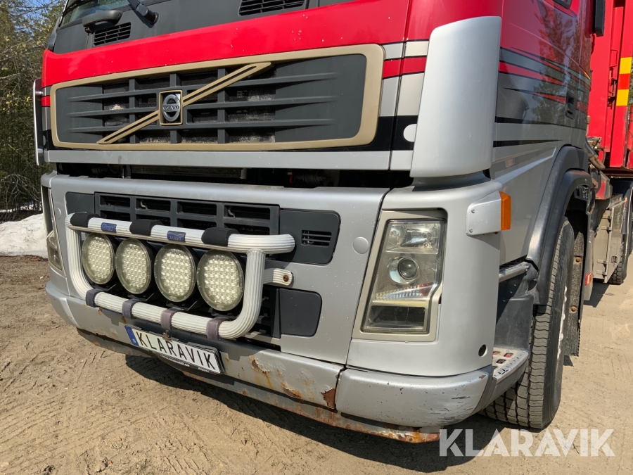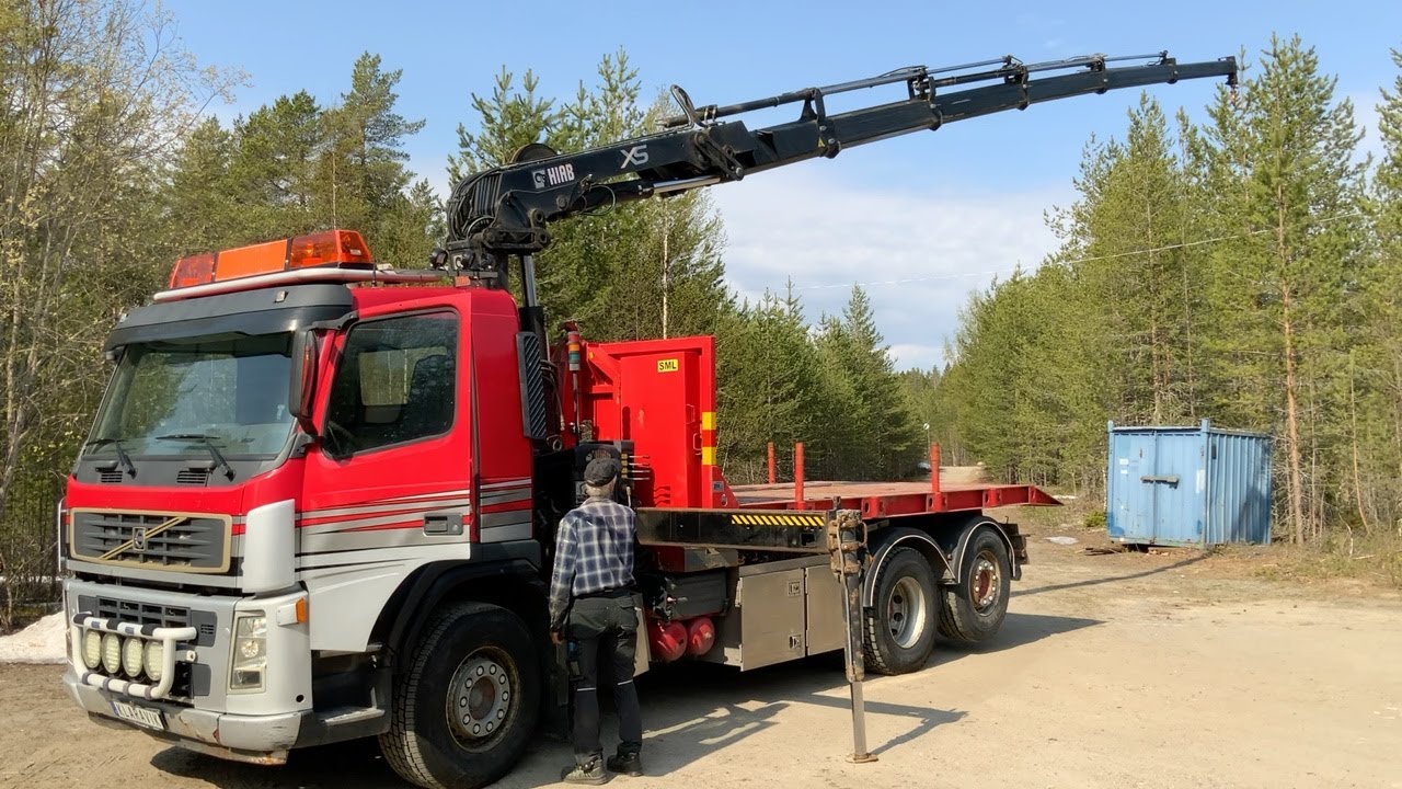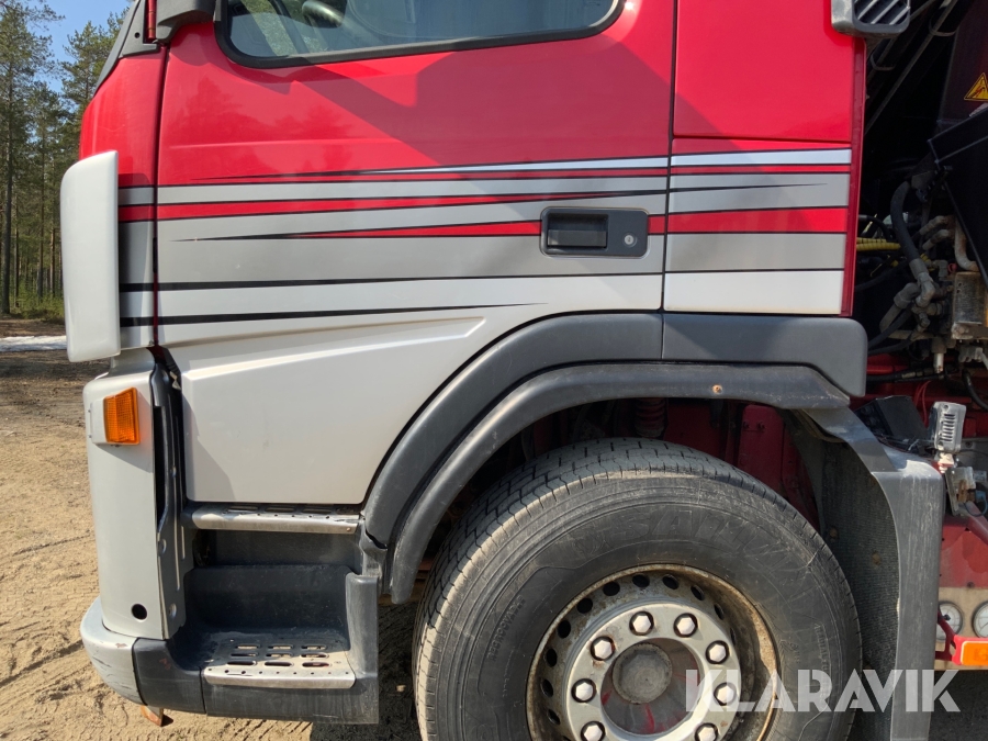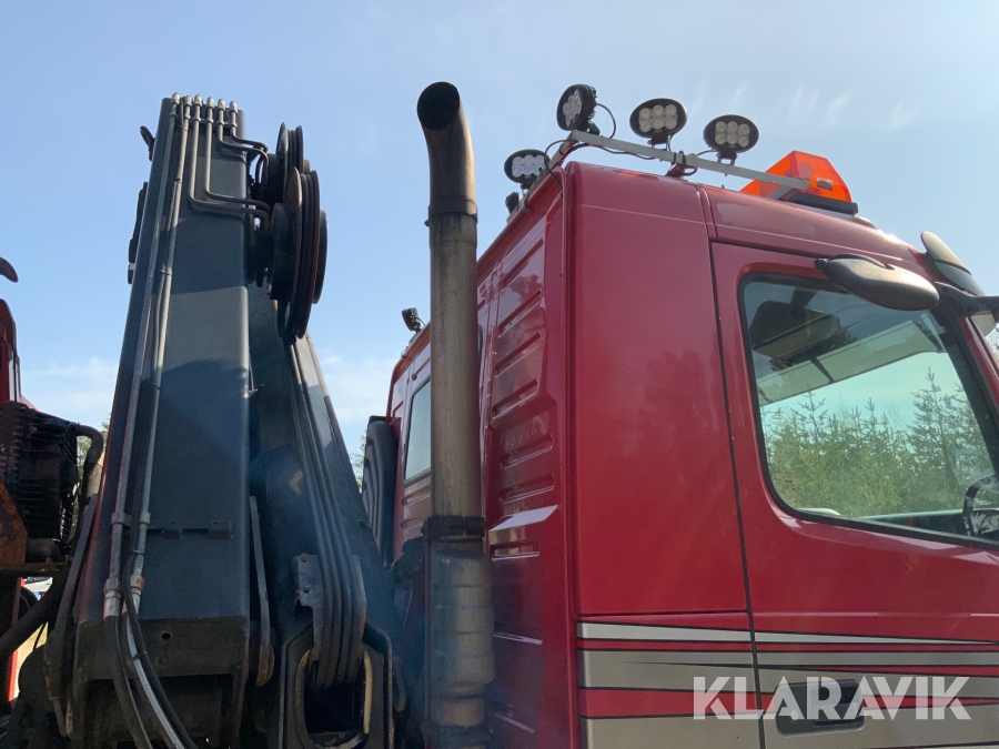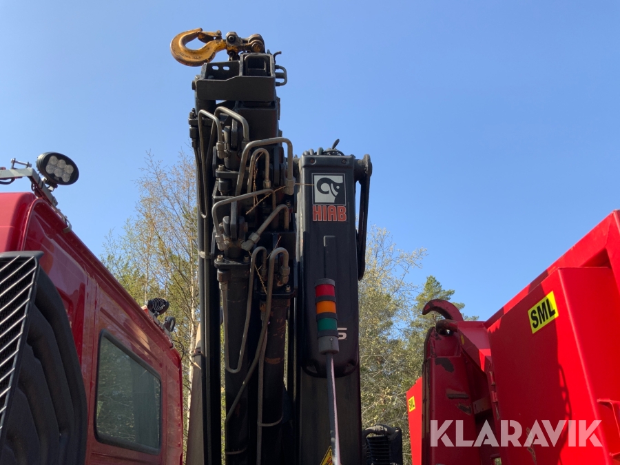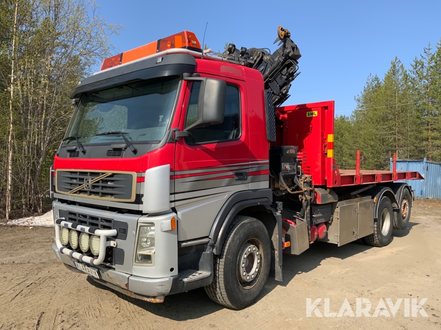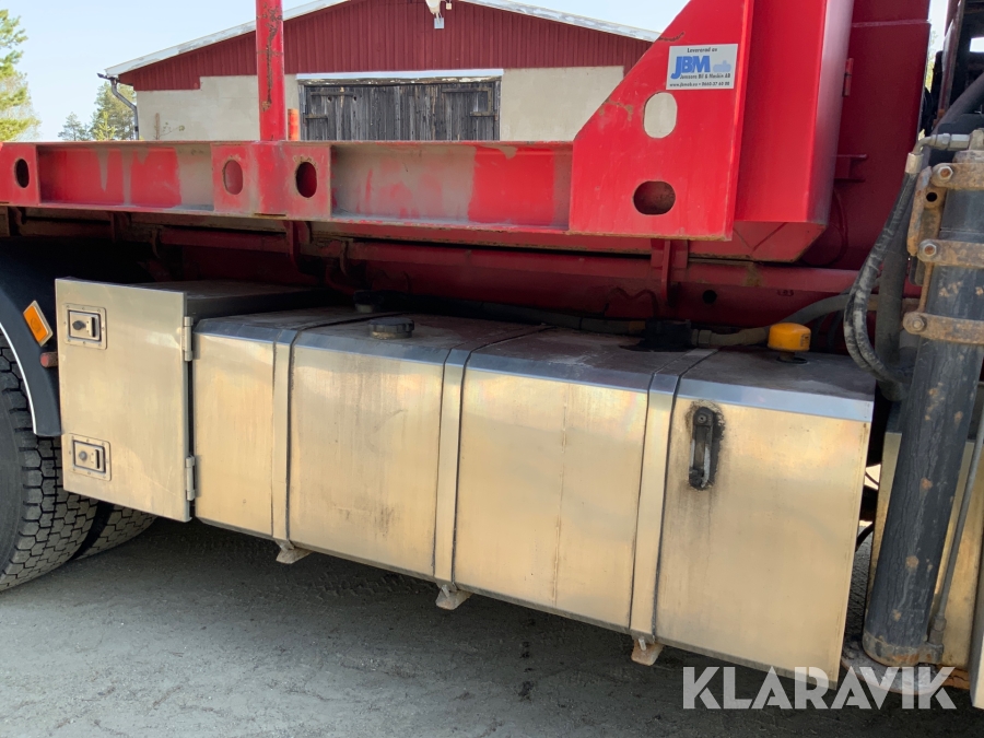 Kranbil Volvo FM340 med lastväxlare och två flak