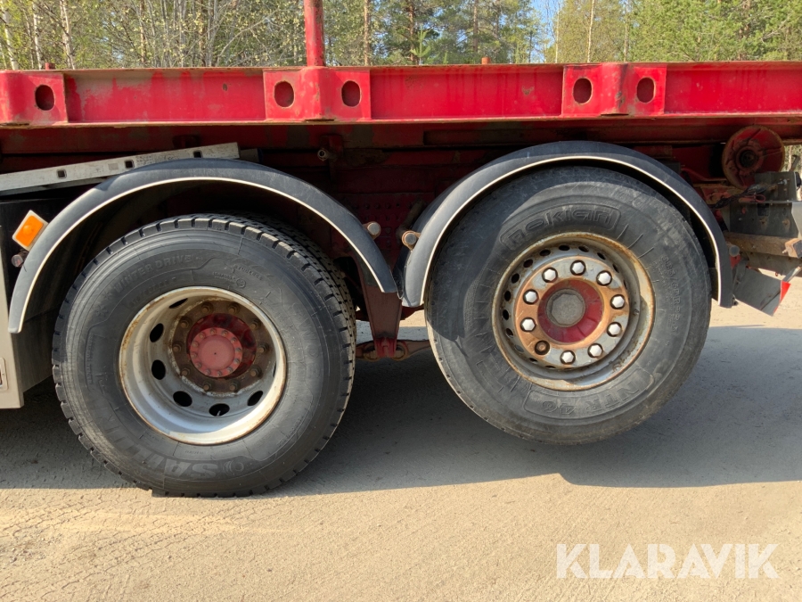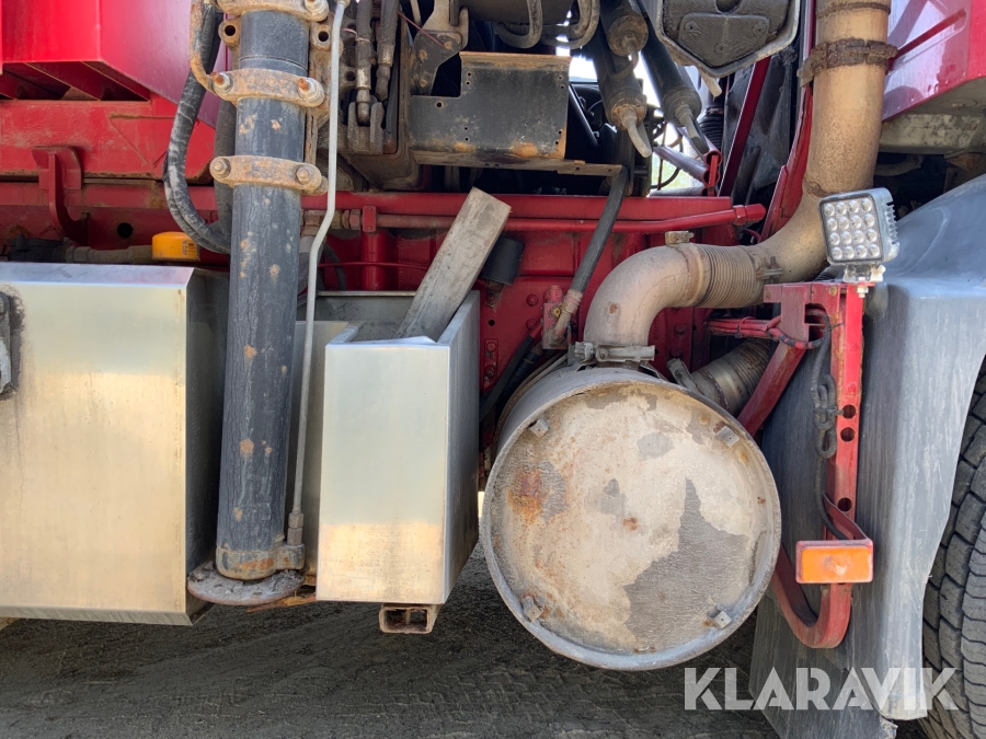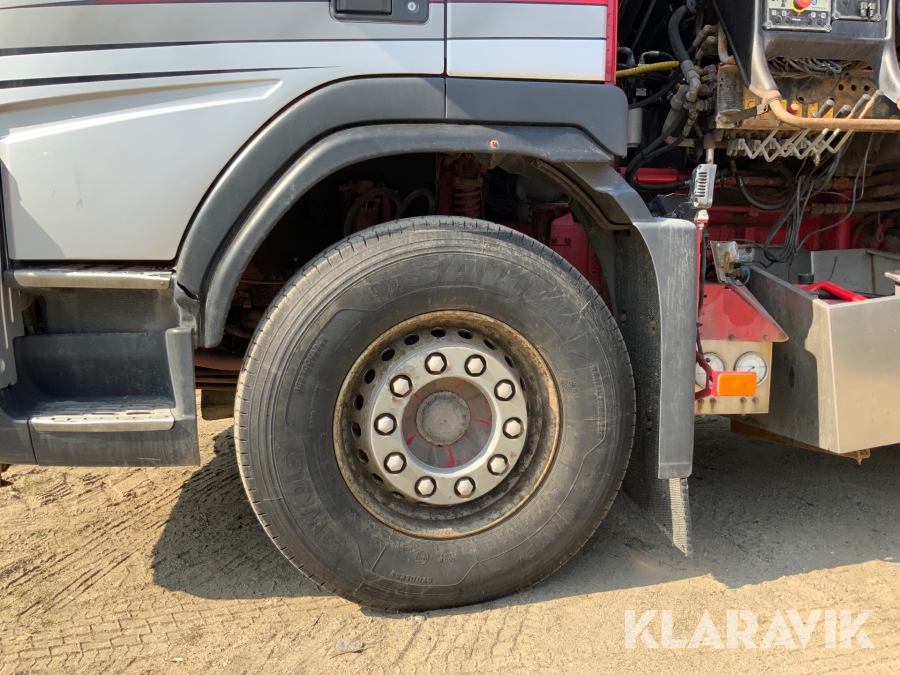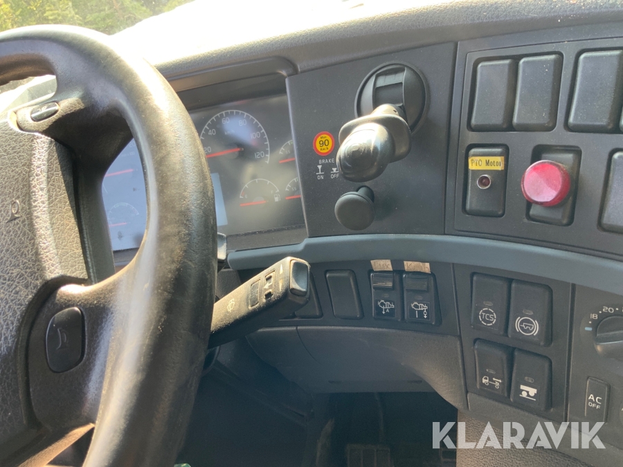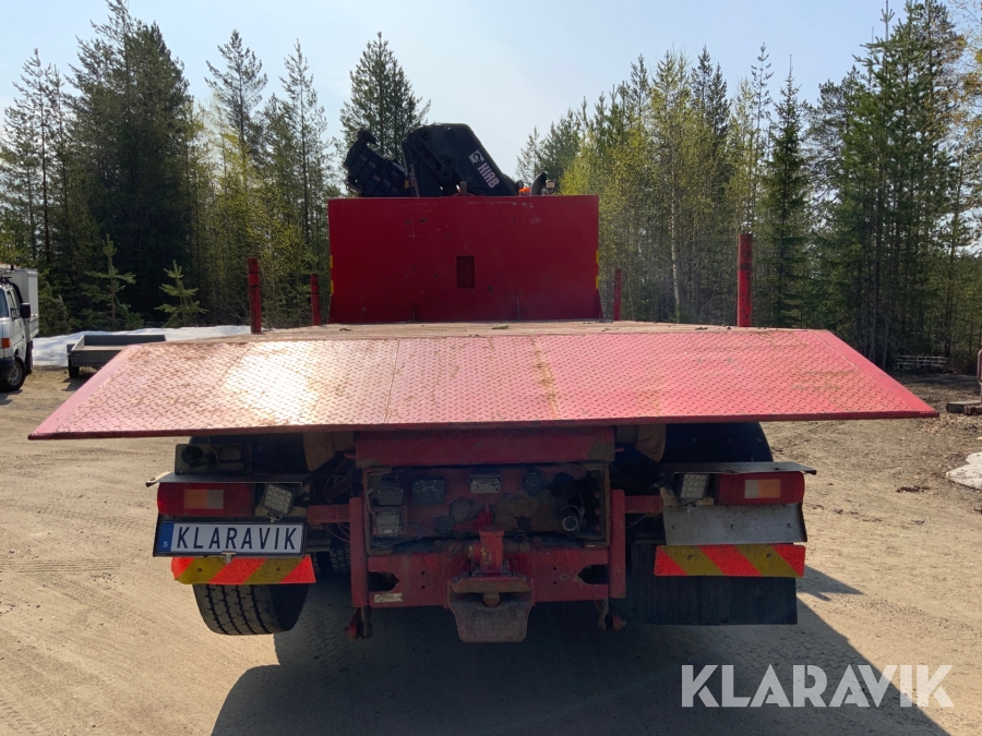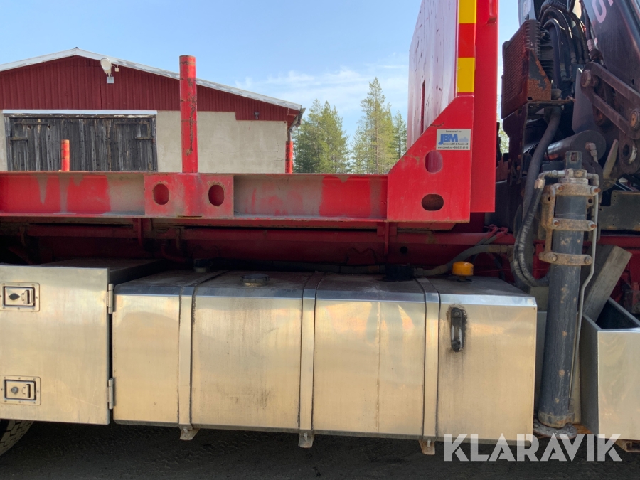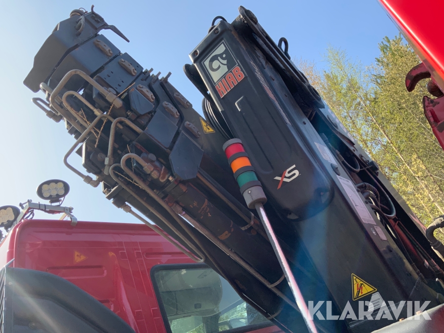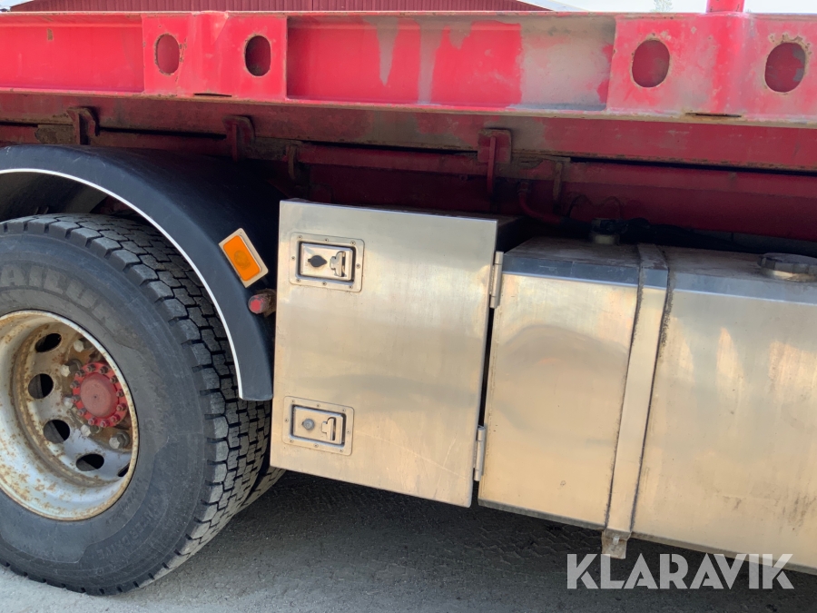 Kranbil Volvo FM340 med lastväxlare och två flak
