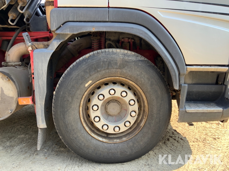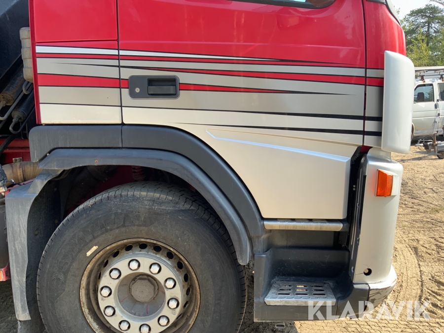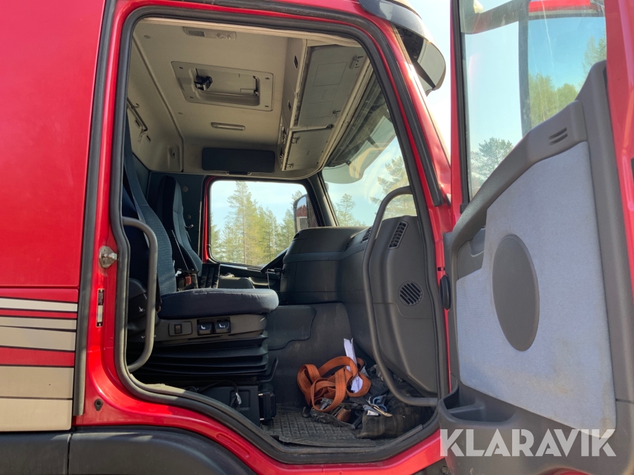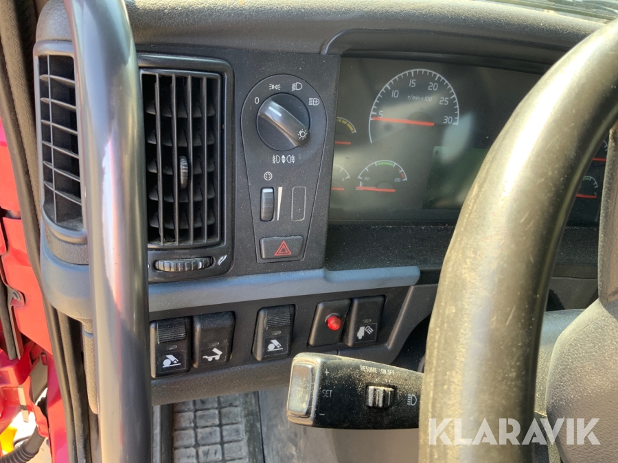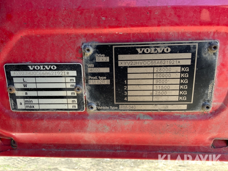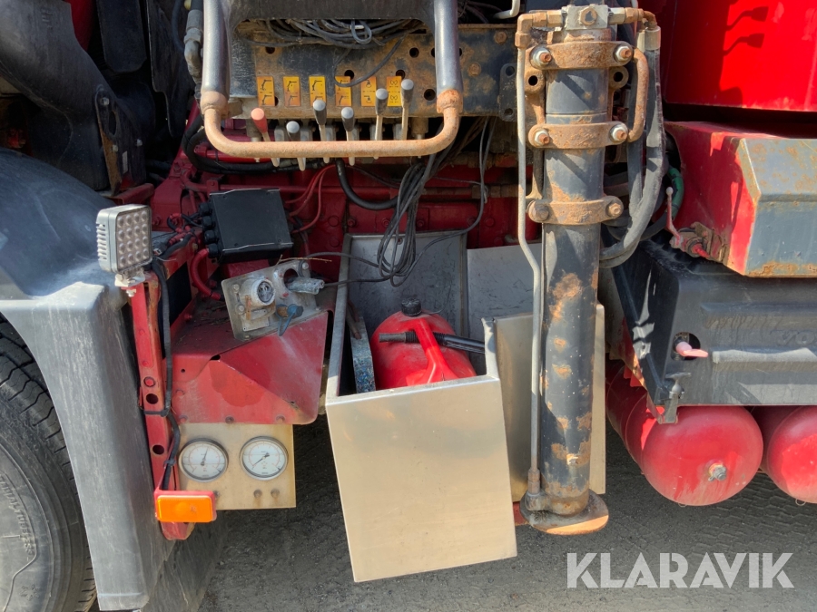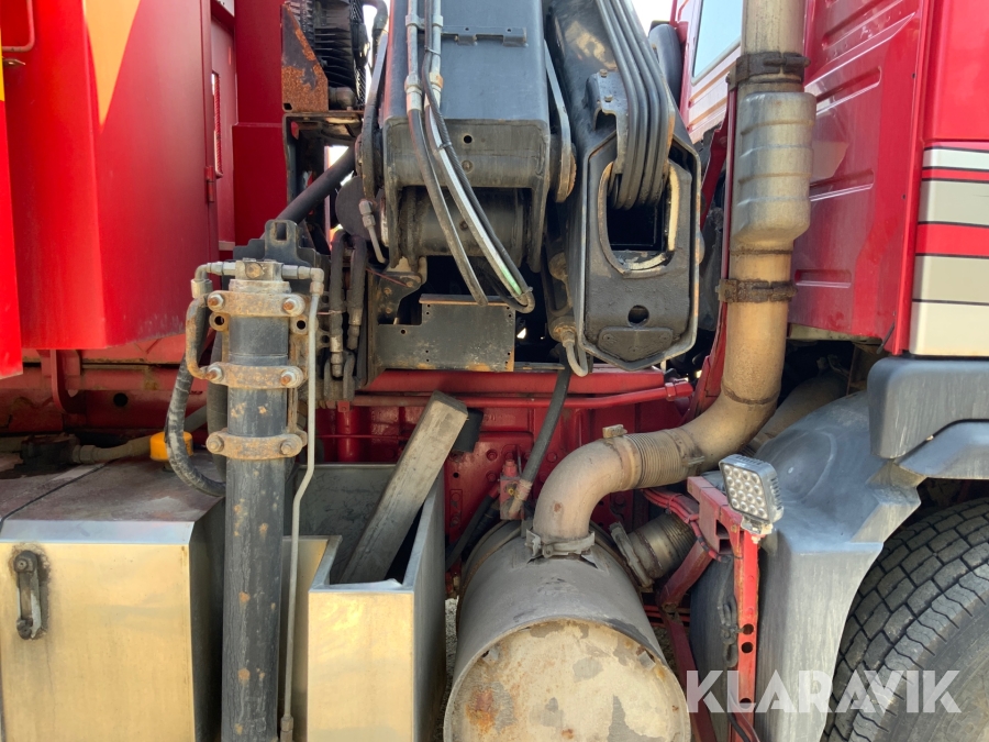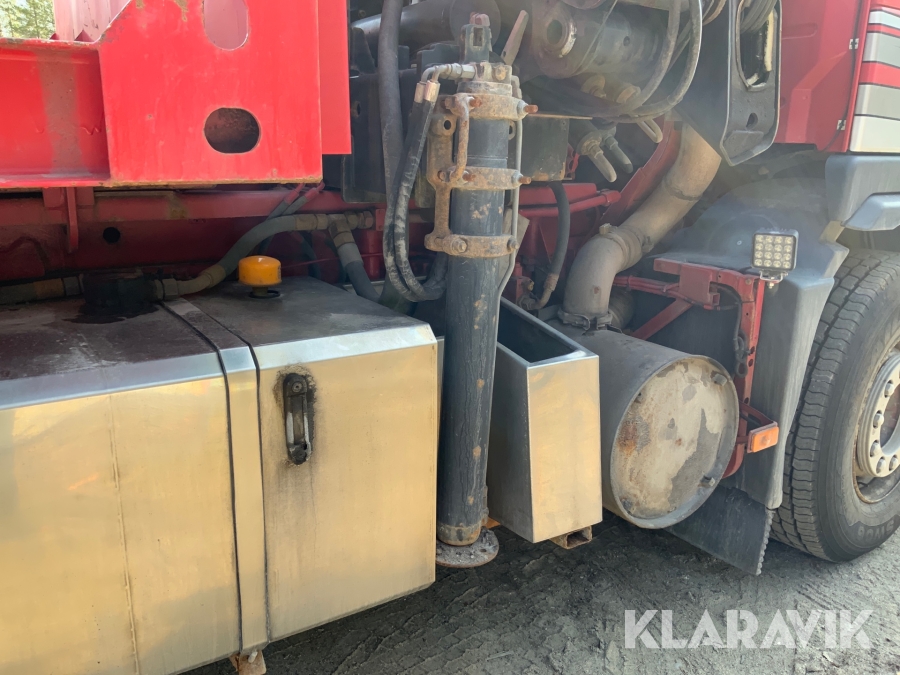 Kranbil Volvo FM340 med lastväxlare och två flak