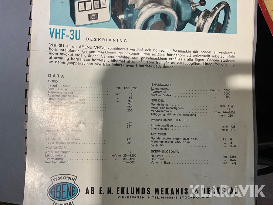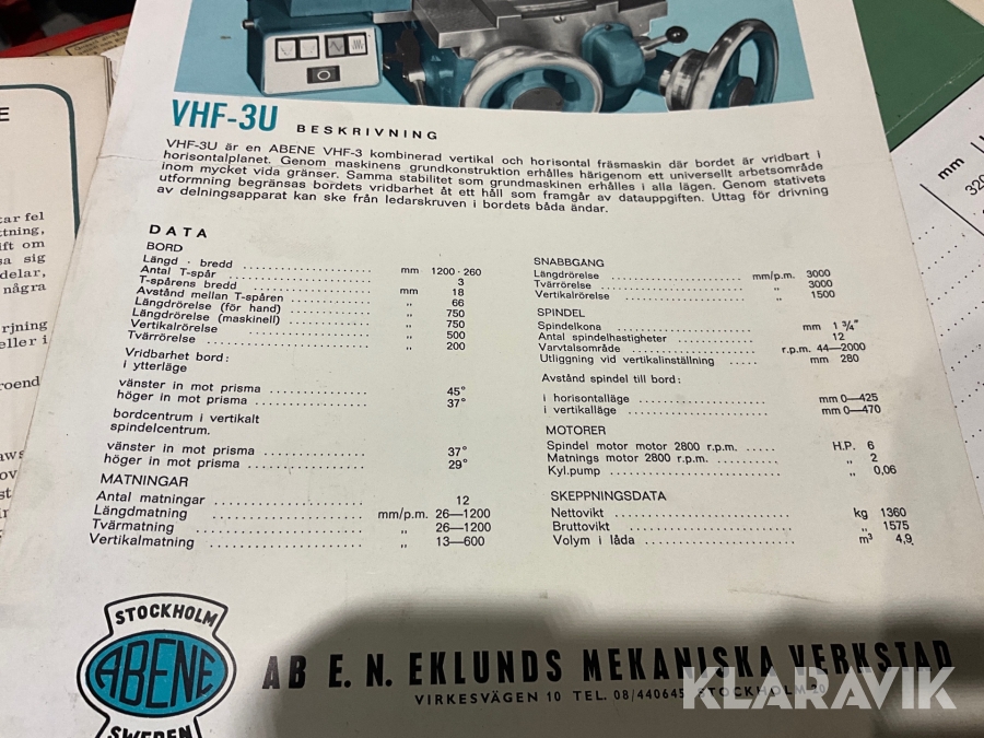 Fräsmaskin Abene VHF-30 med mycket tillbehör och fjärrkontroll