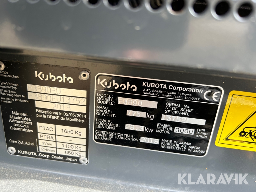 Gräsklippare Kubota F3890EU hydrostatisk 4WD