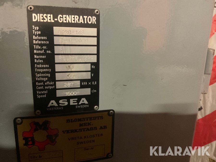 Reservkraftsaggregat Asea / Scania Dgrb-14s