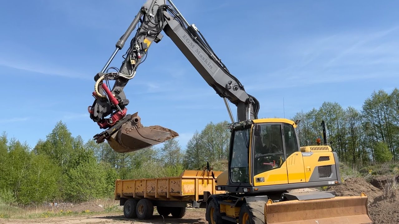 Grävmaskin Volvo EW160D med tiltrotator och vagn