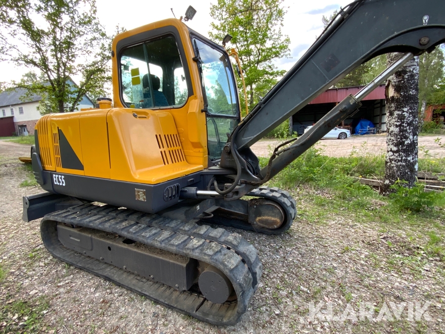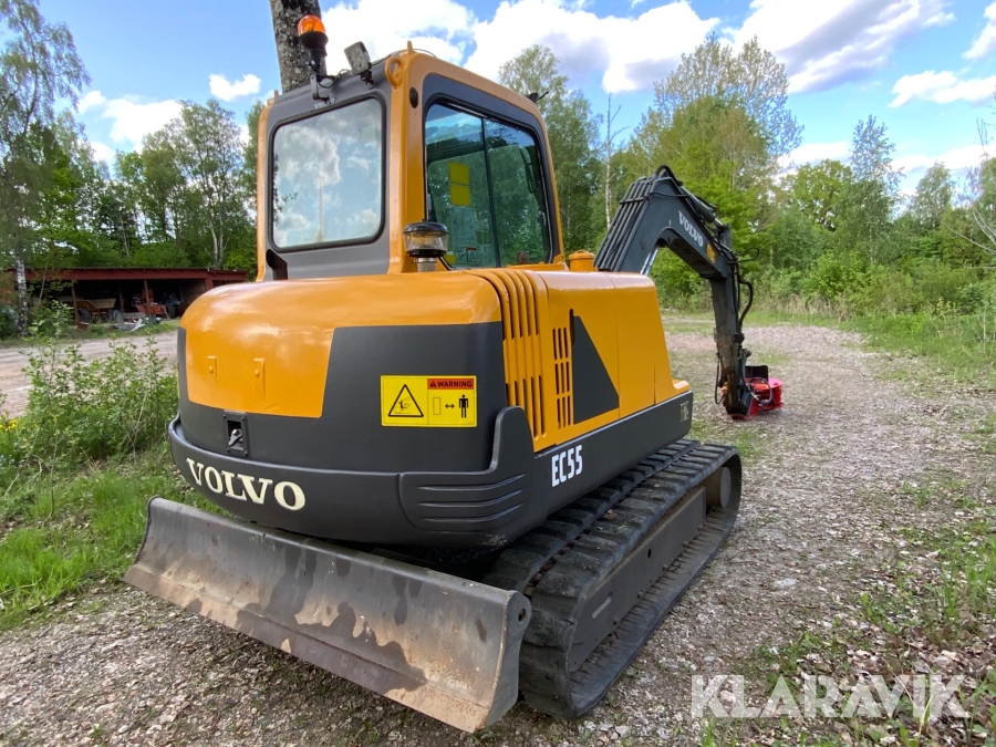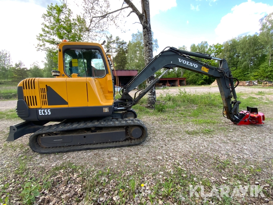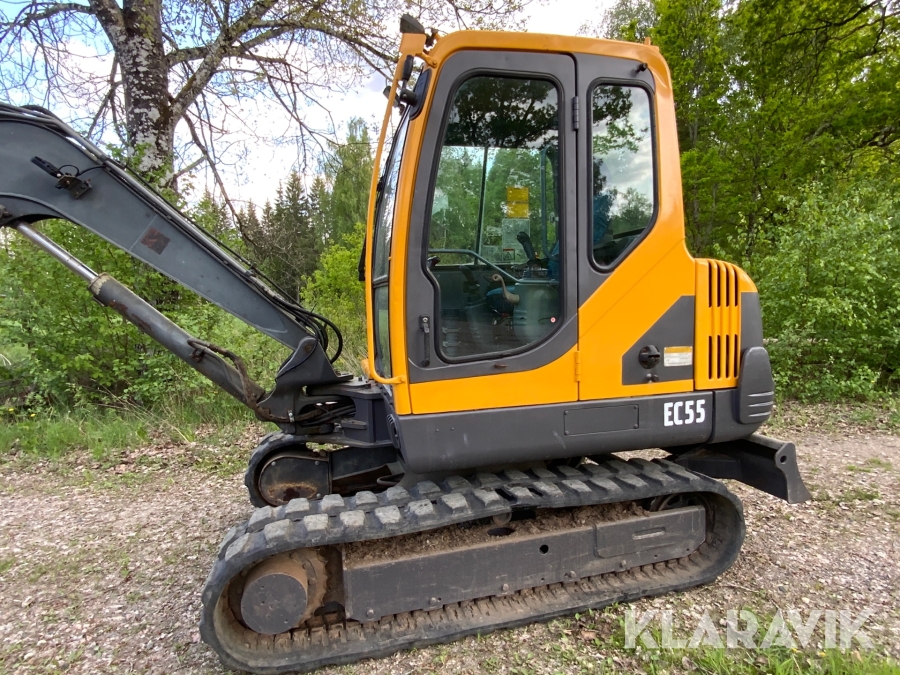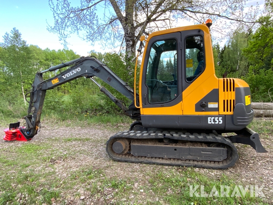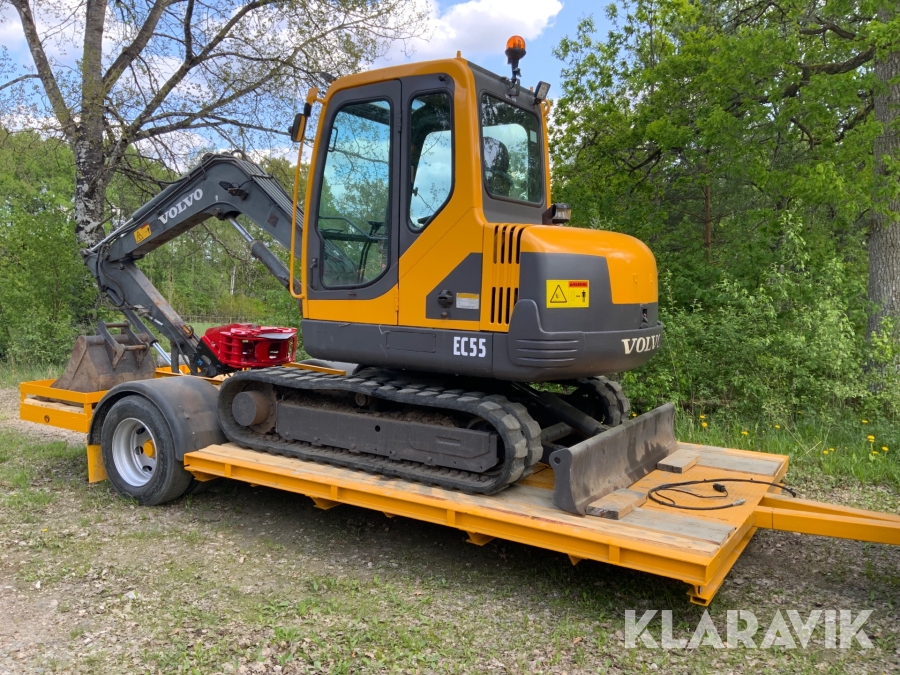 Grävmaskin Volvo EC55 med bromsad trailer Dalaklipp+skopa