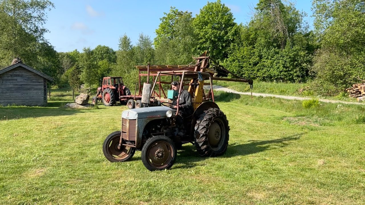 Veterantraktor Massey-Ferguson Grålle med kran och skogsvagn