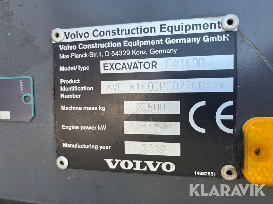 Grävmaskin Volvo Ew160d med tiltrotator & skopa