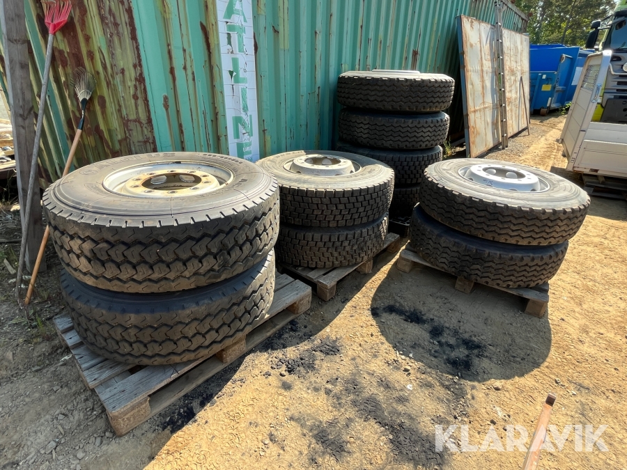 Komplett uppsättning lastbilsdäck till treaxlad boogiebil 10st