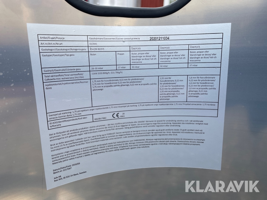 Boka frakt? Det finns ingen specifik information om frakt för just det här objektet, men om du skickar oss en förfrågan via vårt fraktformulär, så undersöker vi möjligheten. Paket, EU-pall eller större maskin? Klaravik har fraktavtal med Schenker och i de fall vi kan hjälpa till med frakt gäller det objekt som ryms i paket eller inom en EU-pall (upp till 120*80 cm och 990 kg). Det går att beställa frakt inom Sverige, dock inte till utlandet. Vid frakt på större maskiner rekommenderar vi gärna transportföretag som du kan kontakta.
