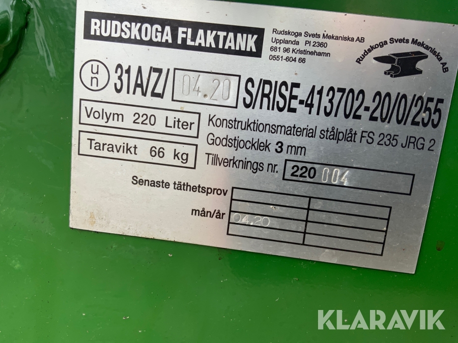 Flaktank Rudskoga 220L till pick up, med pump