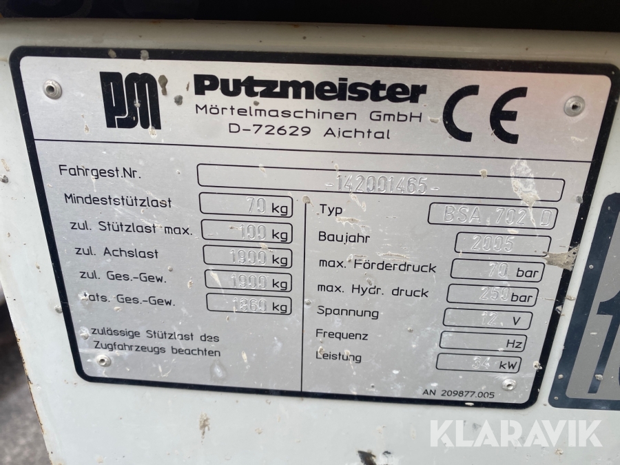 Betongpump Putzmeister BSA702D