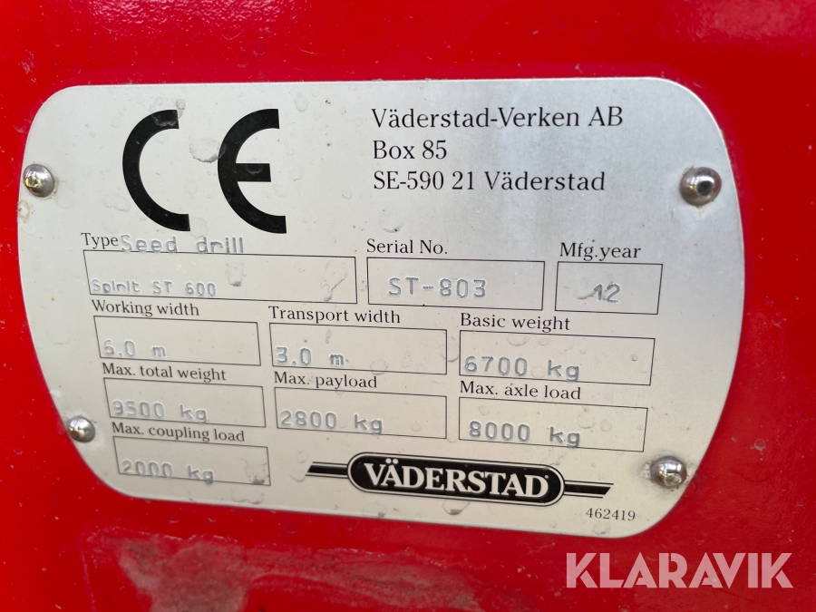 Såmaskin Väderstad Spirit 600S XL
