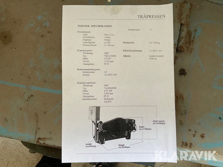 Boka frakt? Det finns ingen specifik information om frakt för just det här objektet, men om du skickar oss en förfrågan via vårt fraktformulär, så undersöker vi möjligheten. Paket, EU-pall eller större maskin? Klaravik har fraktavtal med Schenker och i de fall vi kan hjälpa till med frakt gäller det objekt som ryms i paket eller inom en EU-pall (upp till 120*80 cm och 990 kg). Det går att beställa frakt inom Sverige, dock inte till utlandet. Vid frakt på större maskiner rekommenderar vi gärna transportföretag som du kan kontakta.