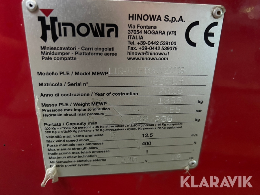 Vikbomslift Hinowa Lightlift 14.72 IIIs