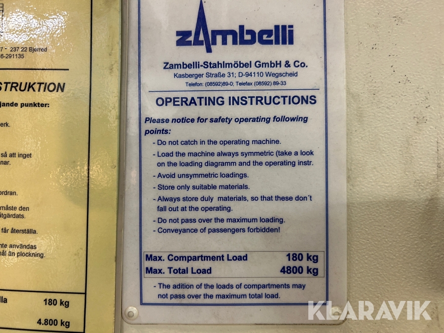 Begagnat Paternosterverk Zambelli Cargo 1801 nedmonterad