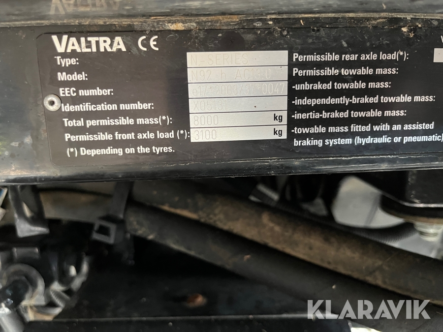 Traktor Valtra N92 med frontlastare och redskap