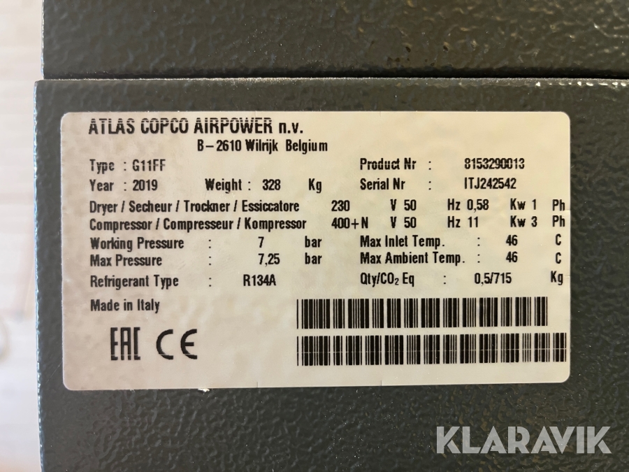 Skruvkompressor Atlas Copco G11FF