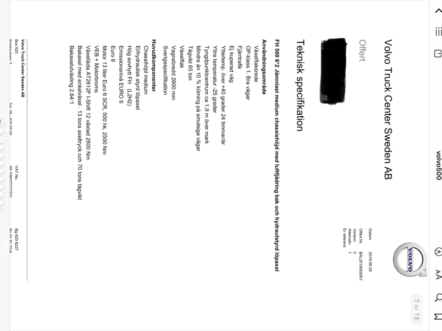Lastbil Volvo FH500 6x2 lösflak