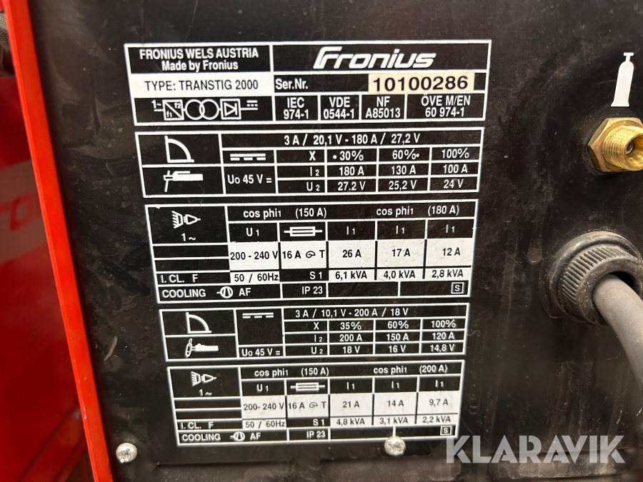 Tigavets Fronius Transtig 2000 med FK 2000