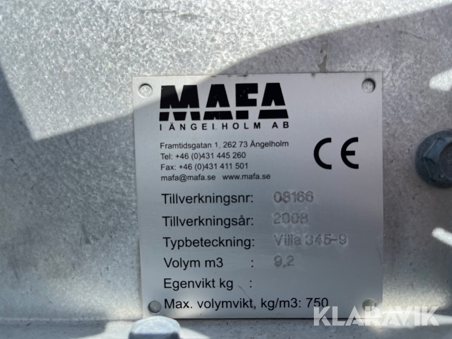 Boka frakt? Det finns ingen specifik information om frakt för just det här objektet, men om du skickar oss en förfrågan via vårt fraktformulär, så undersöker vi möjligheten. Paket, EU-pall eller större maskin? Klaravik har fraktavtal med Schenker och i de fall vi kan hjälpa till med frakt gäller det objekt som ryms i paket eller inom en EU-pall (upp till 120*80 cm och 990 kg). Det går att beställa frakt inom Sverige, dock inte till utlandet. Vid frakt på större maskiner rekommenderar vi gärna transportföretag som du kan kontakta.