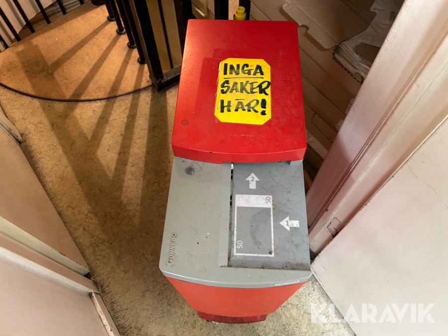 Boka frakt? Det finns ingen specifik information om frakt för just det här objektet, men om du skickar oss en förfrågan via vårt fraktformulär, så undersöker vi möjligheten. Paket, EU-pall eller större maskin? Klaravik har fraktavtal med Schenker och i de fall vi kan hjälpa till med frakt gäller det objekt som ryms i paket eller inom en EU-pall (upp till 120*80 cm och 990 kg). Det går att beställa frakt inom Sverige, dock inte till utlandet. Vid frakt på större maskiner rekommenderar vi gärna transportföretag som du kan kontakta.