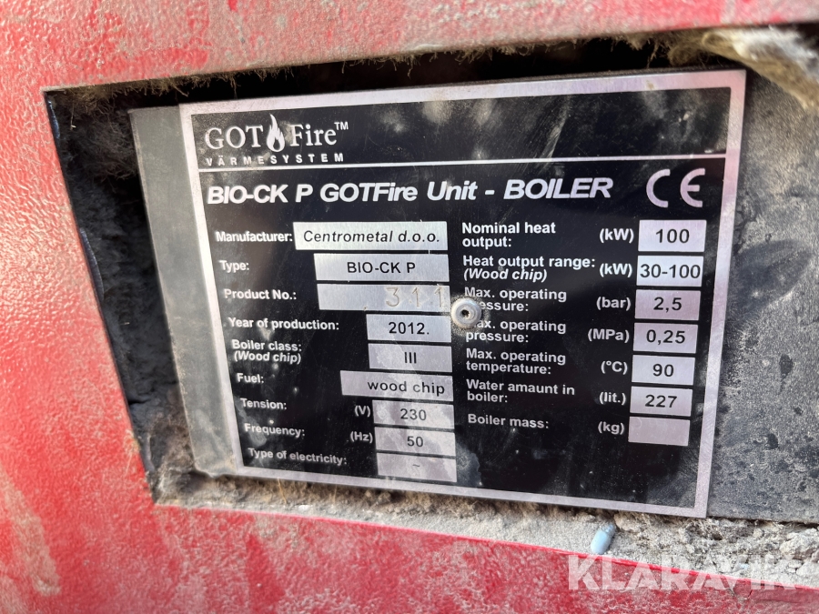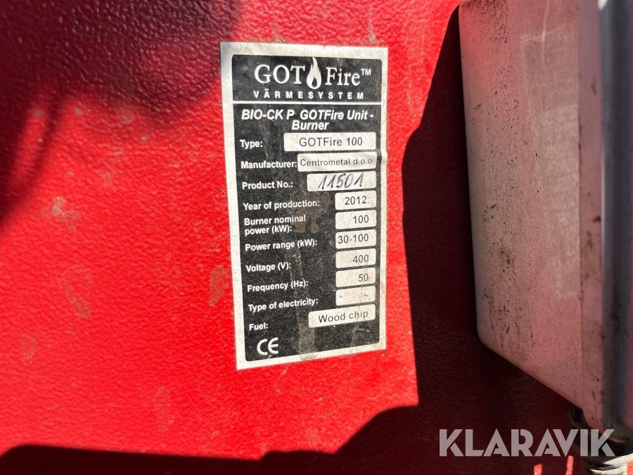 Flispanna med förråd Gotfire Bio ck p 100kW 8m3 förråd, skruv, brännare