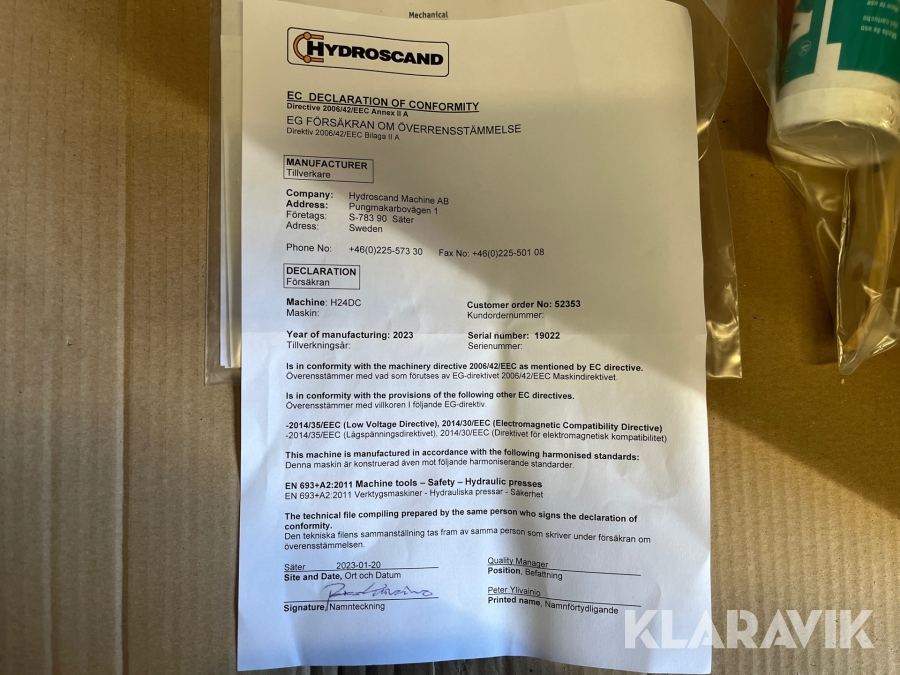 Boka frakt? Det finns ingen specifik information om frakt för just det här objektet, men om du skickar oss en förfrågan via vårt fraktformulär, så undersöker vi möjligheten. Paket, EU-pall eller större maskin? Klaravik har fraktavtal med Schenker och i de fall vi kan hjälpa till med frakt gäller det objekt som ryms i paket eller inom en EU-pall (upp till 120*80 cm och 990 kg). Det går att beställa frakt inom Sverige, dock inte till utlandet. Vid frakt på större maskiner rekommenderar vi gärna transportföretag som du kan kontakta.