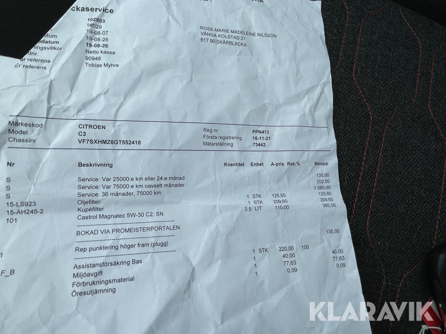 Du som köpare är skyldig att kontrollera objektet vid hämtning. Skiljer sig något avsevärt jämfört med informationen på klaravik.se? Kontakta då Klaravik innan du tar objektet från platsen. Läs fullständiga köpvillkor.