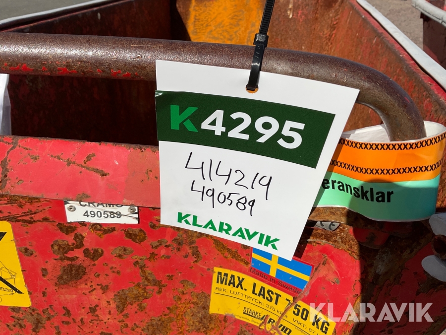 For sheds and containers (10 feet and larger), loading assistance can be purchased. Payment is made either by invoice or by card at the seller's location. The cost per lift is SEK 500 + VAT.