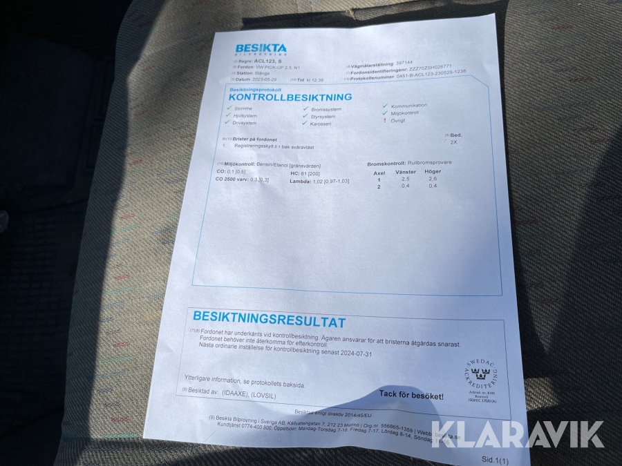 Du som köpare är skyldig att kontrollera objektet vid hämtning. Skiljer sig något avsevärt jämfört med informationen på klaravik.se? Kontakta då Klaravik innan du tar objektet från platsen. Läs fullständiga köpvillkor.