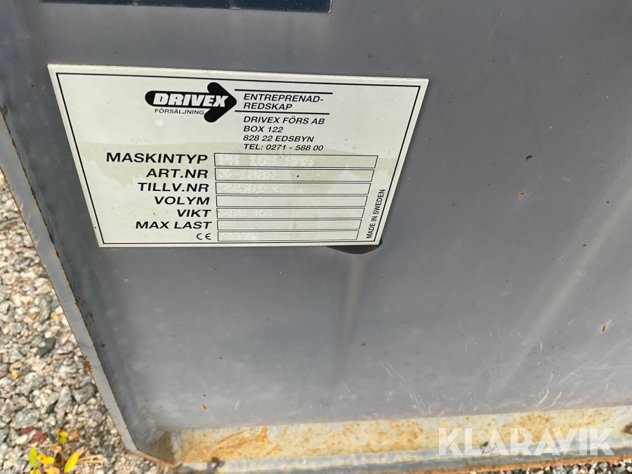 Boka frakt? Det finns ingen specifik information om frakt för just det här objektet, men om du skickar oss en förfrågan via vårt fraktformulär, så undersöker vi möjligheten. Paket, EU-pall eller större maskin? Klaravik har fraktavtal med Schenker och i de fall vi kan hjälpa till med frakt gäller det objekt som ryms i paket eller inom en EU-pall (upp till 120*80 cm och 990 kg). Det går att beställa frakt inom Sverige, dock inte till utlandet. Vid frakt på större maskiner rekommenderar vi gärna transportföretag som du kan kontakta.