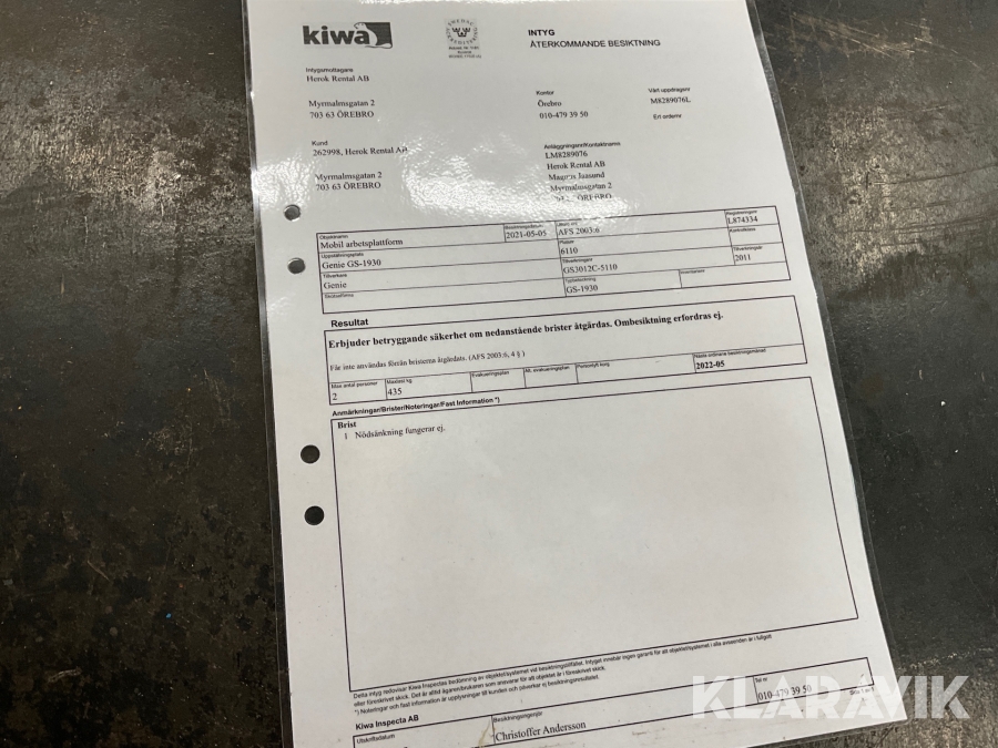 Du som köpare är skyldig att kontrollera objektet vid hämtning. Skiljer sig något avsevärt jämfört med informationen på klaravik.se? Kontakta då Klaravik innan du tar objektet från platsen. Läs fullständiga köpvillkor.
