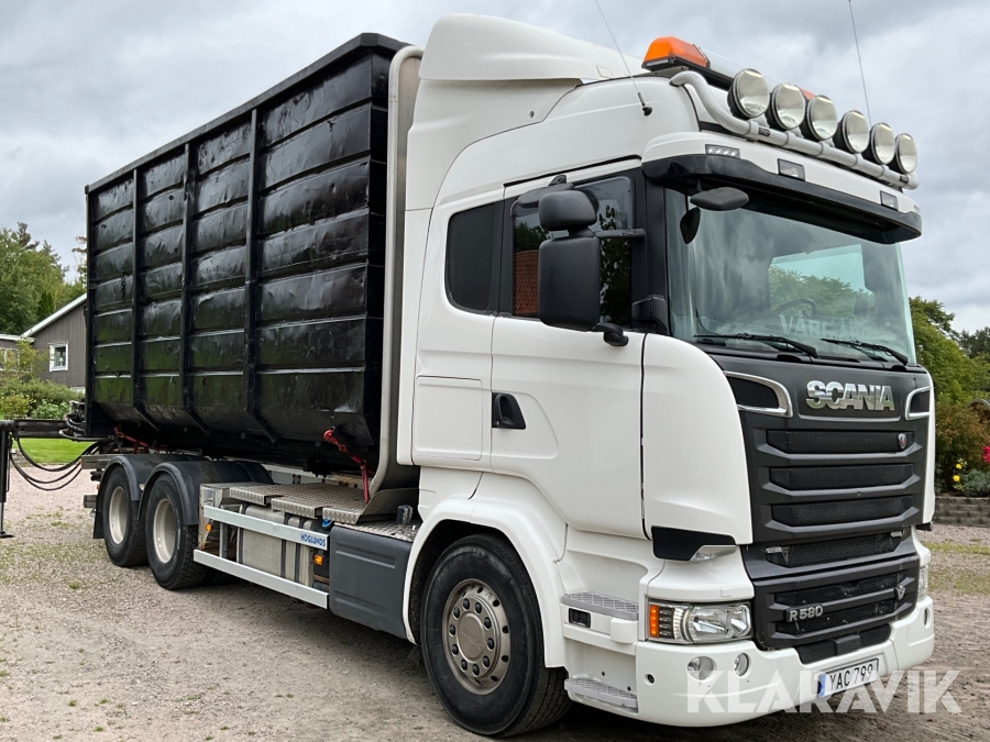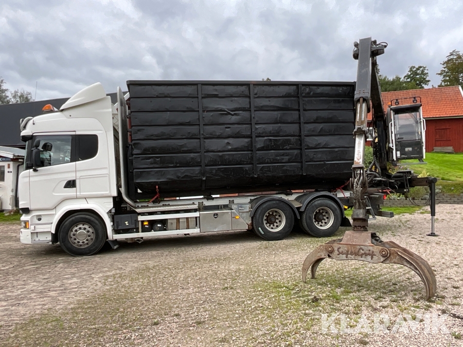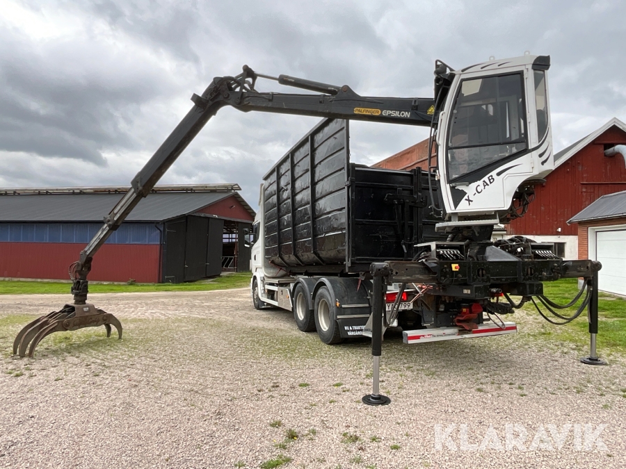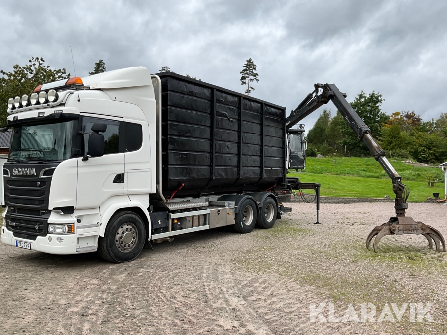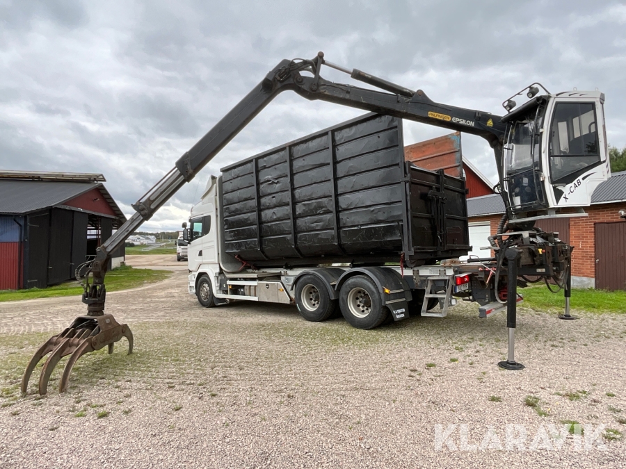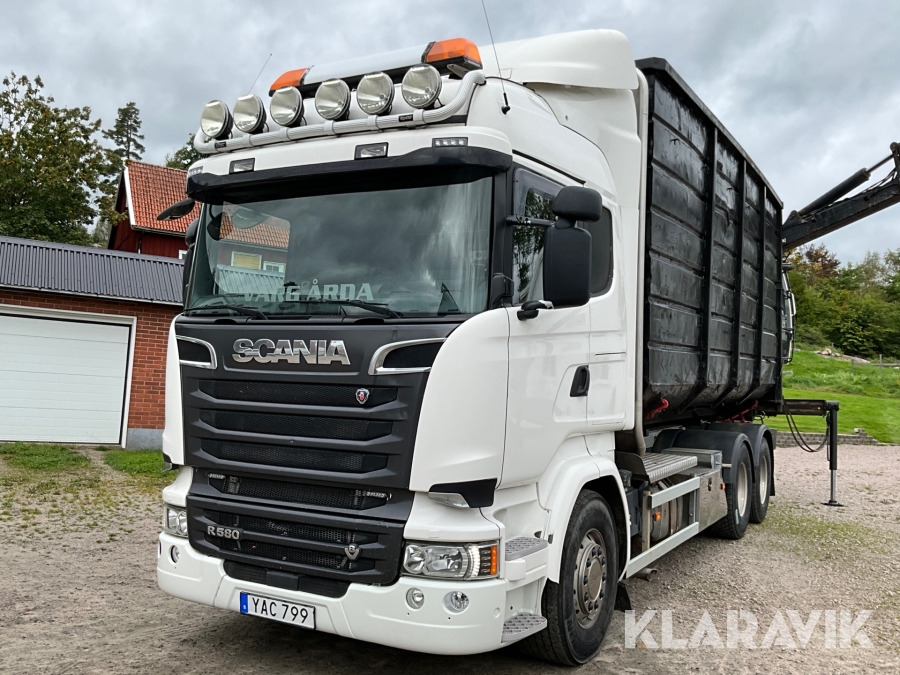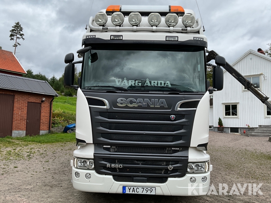 Timmerbil Scania R580LB 6X4HNB med kran Palfinger Epsilon + balja och bankar