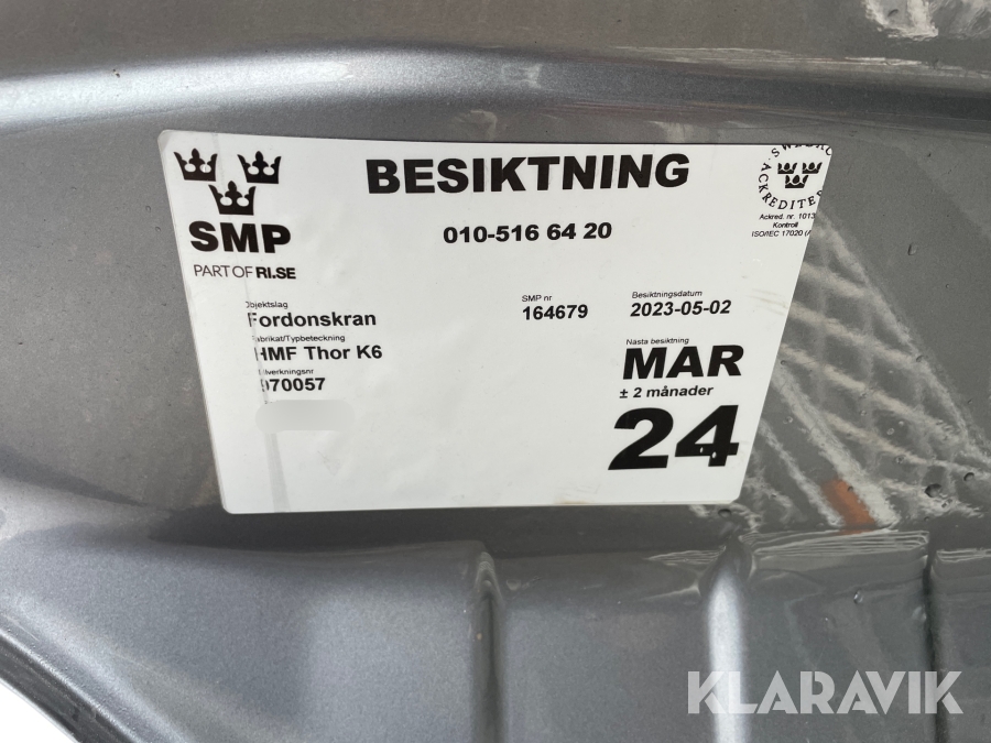 • Serie/chassinummer framgår