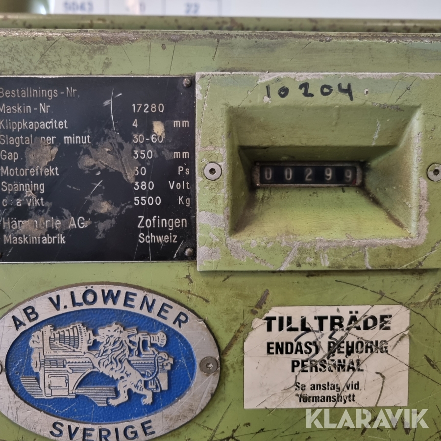 Boka frakt? Det finns ingen specifik information om frakt för just det här objektet, men om du skickar oss en förfrågan via vårt fraktformulär, så undersöker vi möjligheten. Paket, EU-pall eller större maskin? Klaravik har fraktavtal med Schenker och i de fall vi kan hjälpa till med frakt gäller det objekt som ryms i paket eller inom en EU-pall (upp till 120*80 cm och 990 kg). Det går att beställa frakt inom Sverige, dock inte till utlandet. Vid frakt på större maskiner rekommenderar vi gärna transportföretag som du kan kontakta.