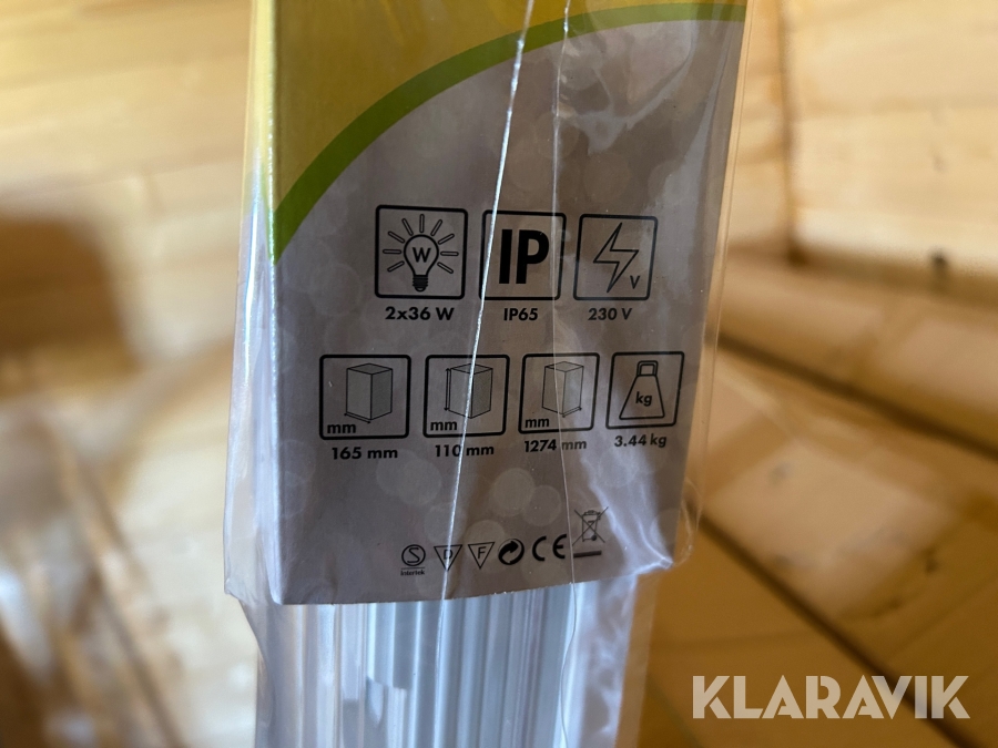 Lysrörsarmatur 48 st Anslut IP65 2x36 W8 D-märkt