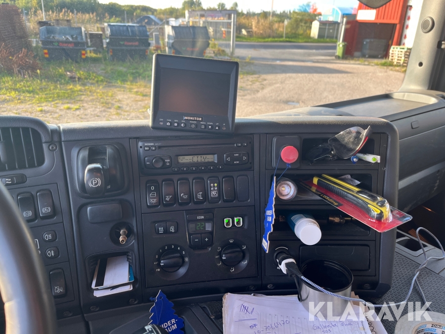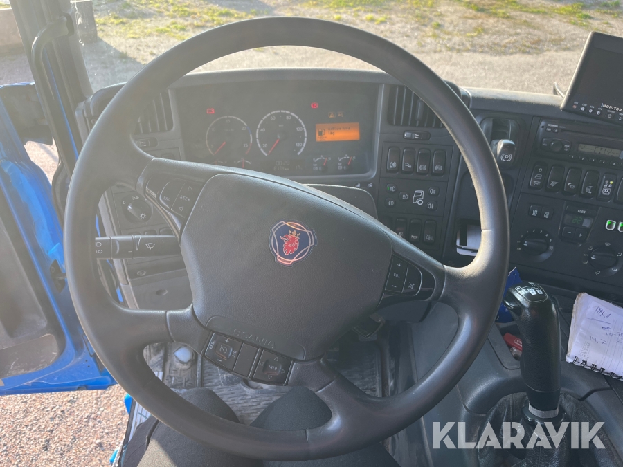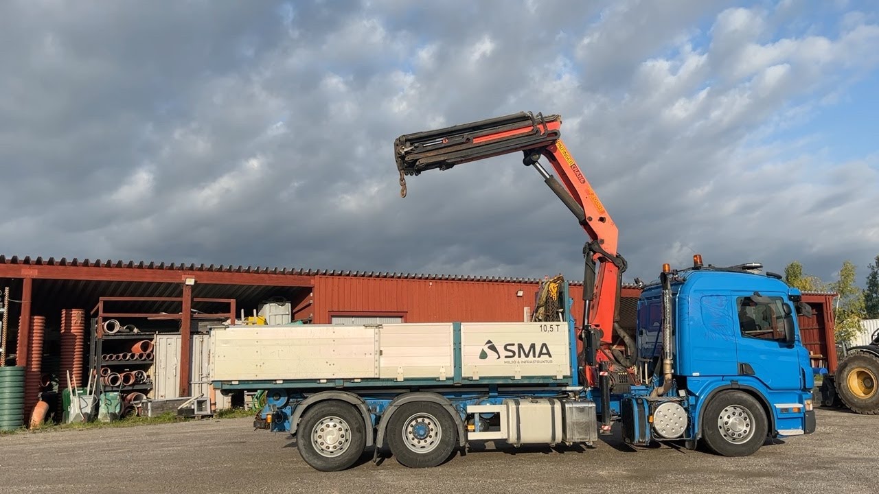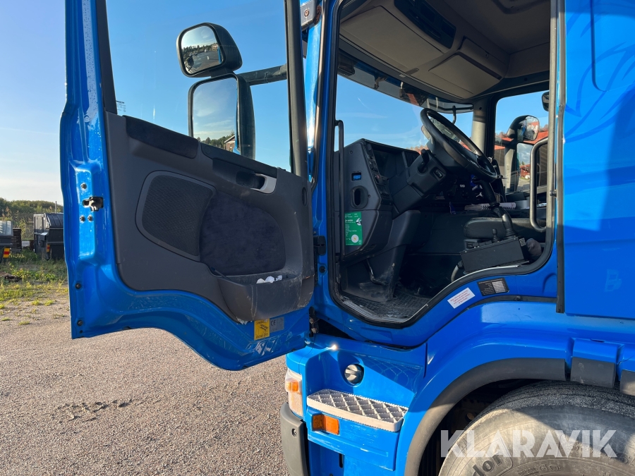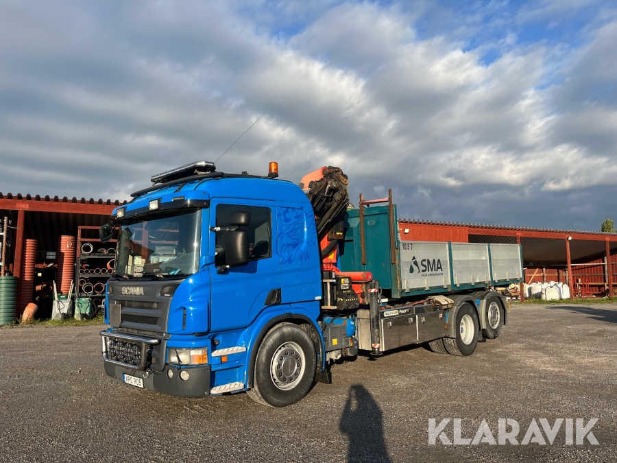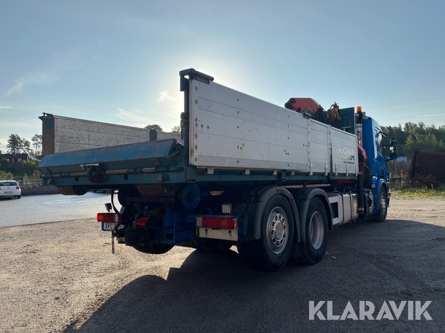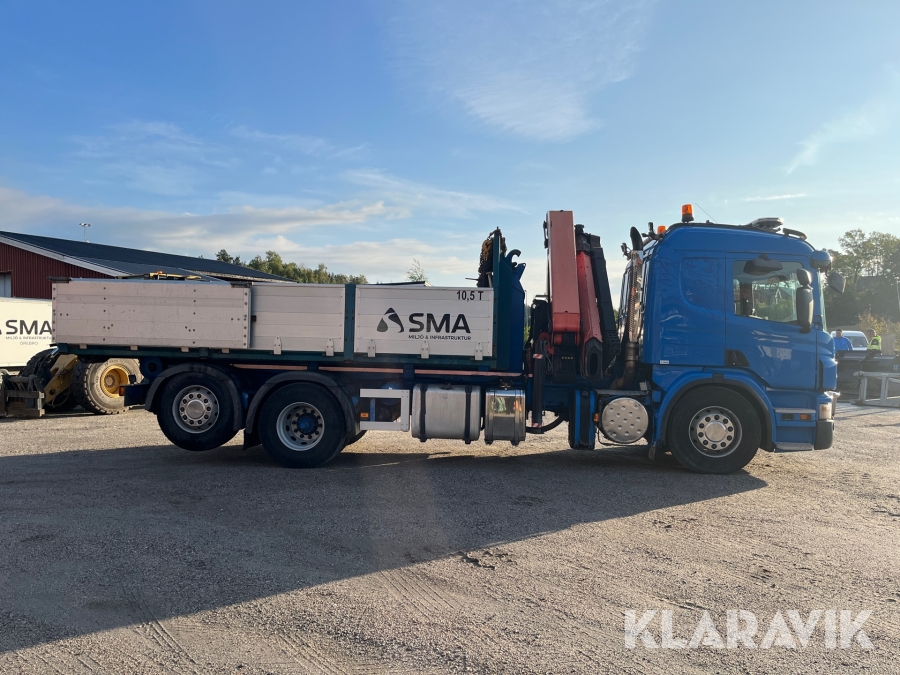 Kranväxlare Scania P420LB6X2 med flak