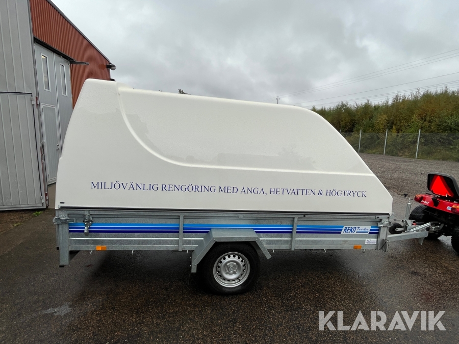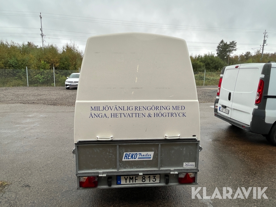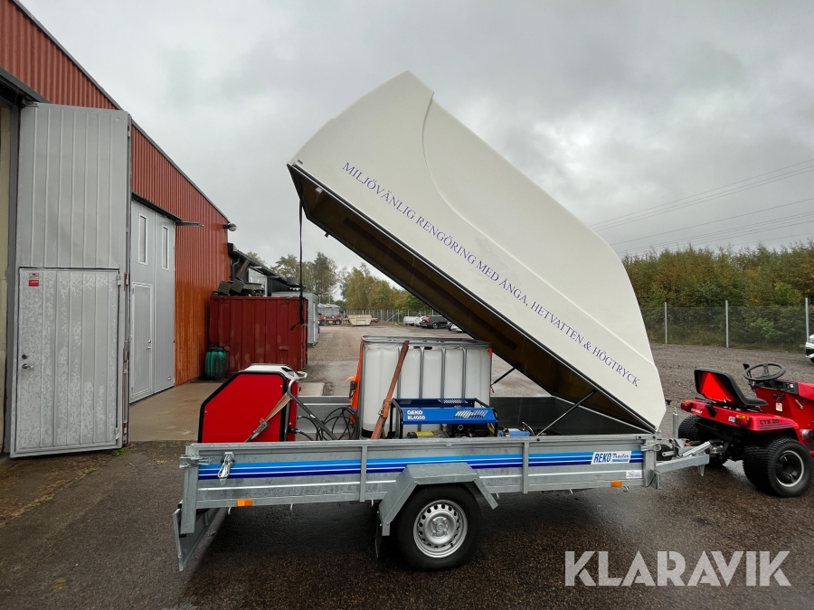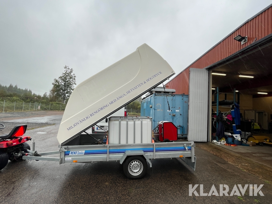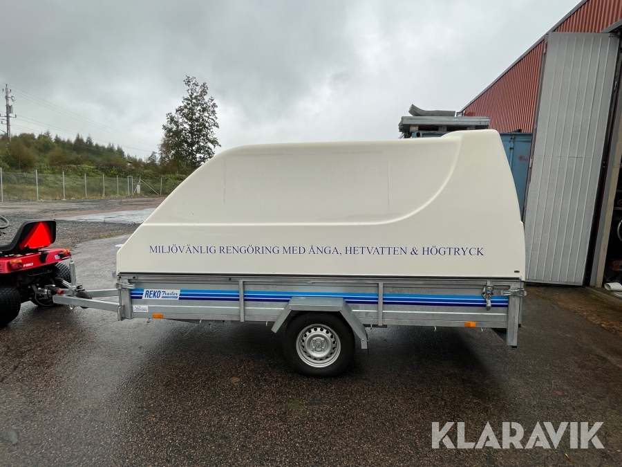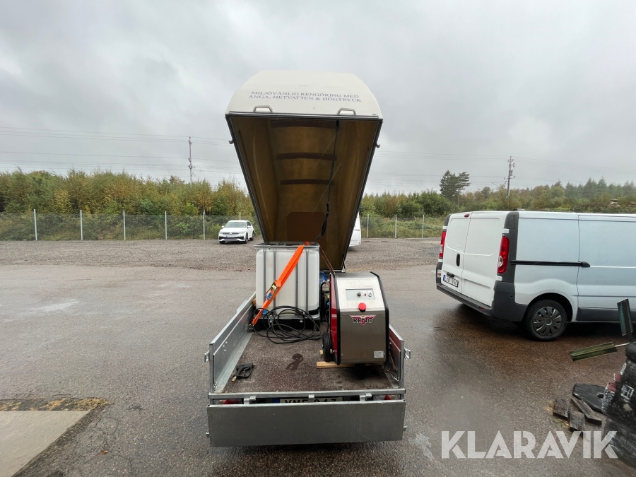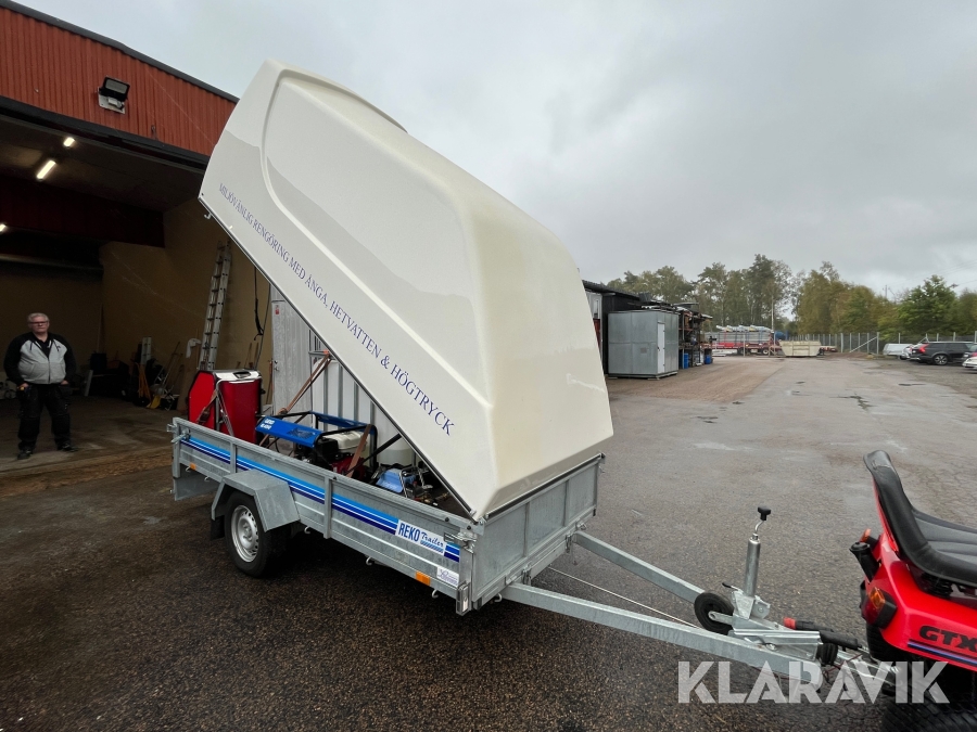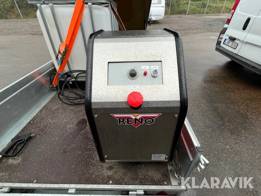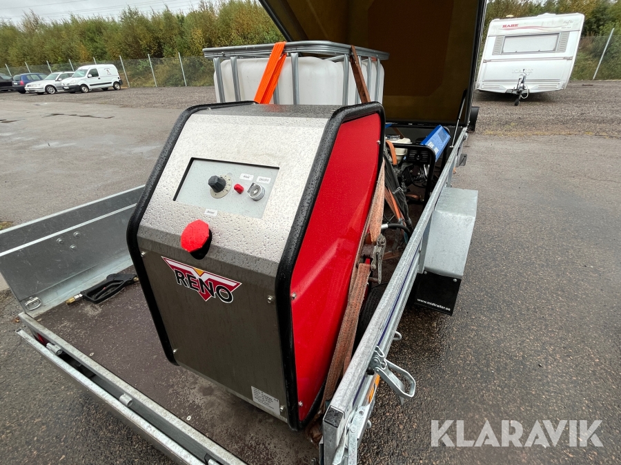 Hetvattentvätt Reno Hot Box 65 kW på personbilssläp Reko FF 4903