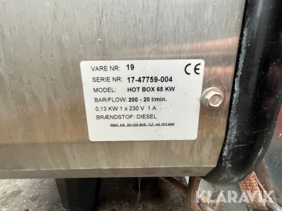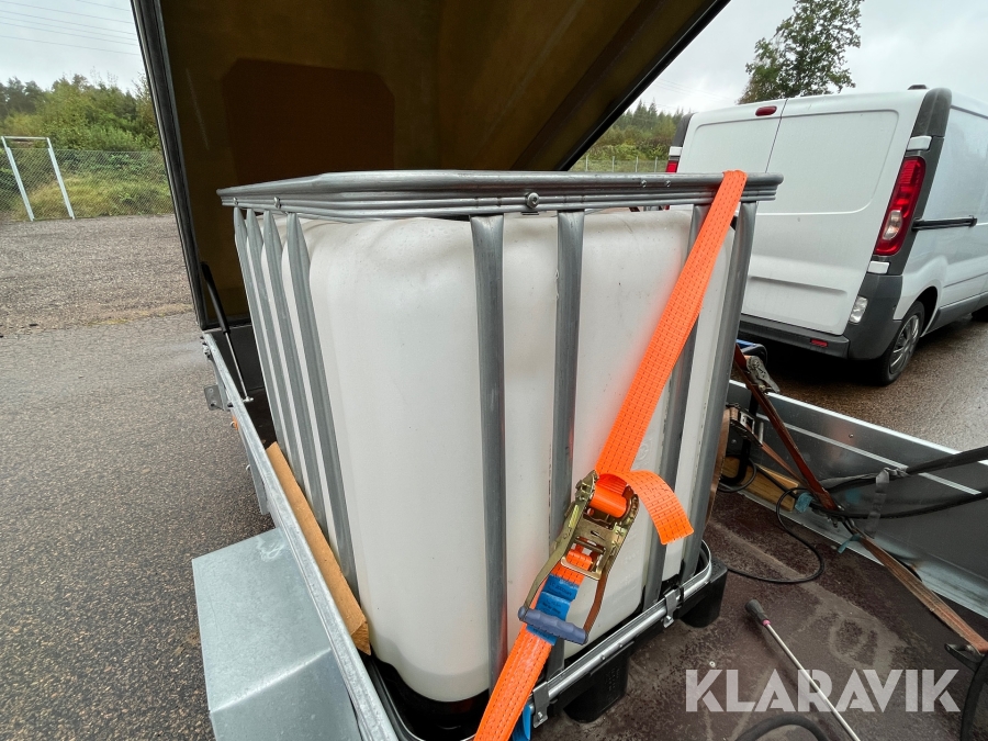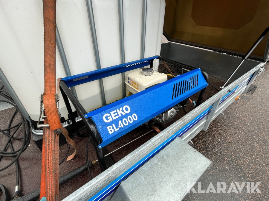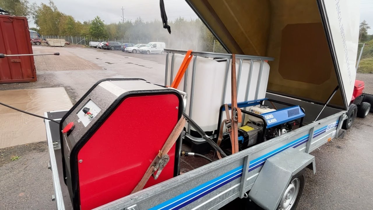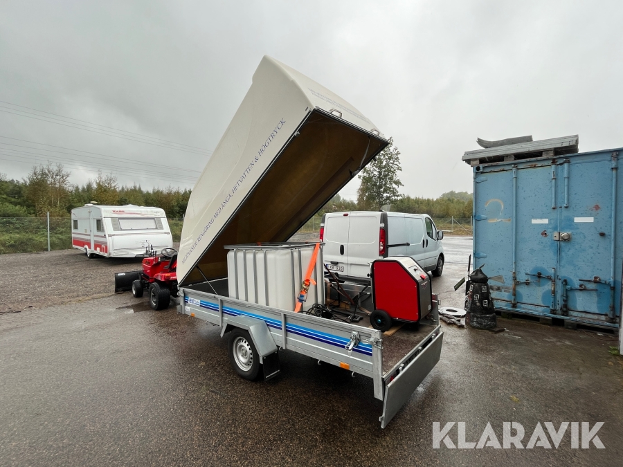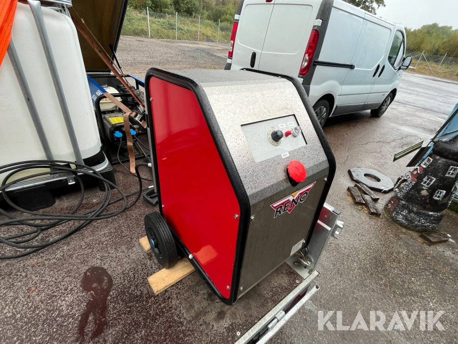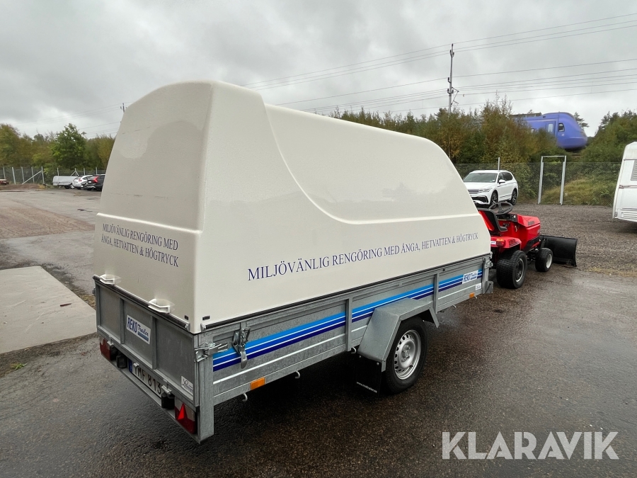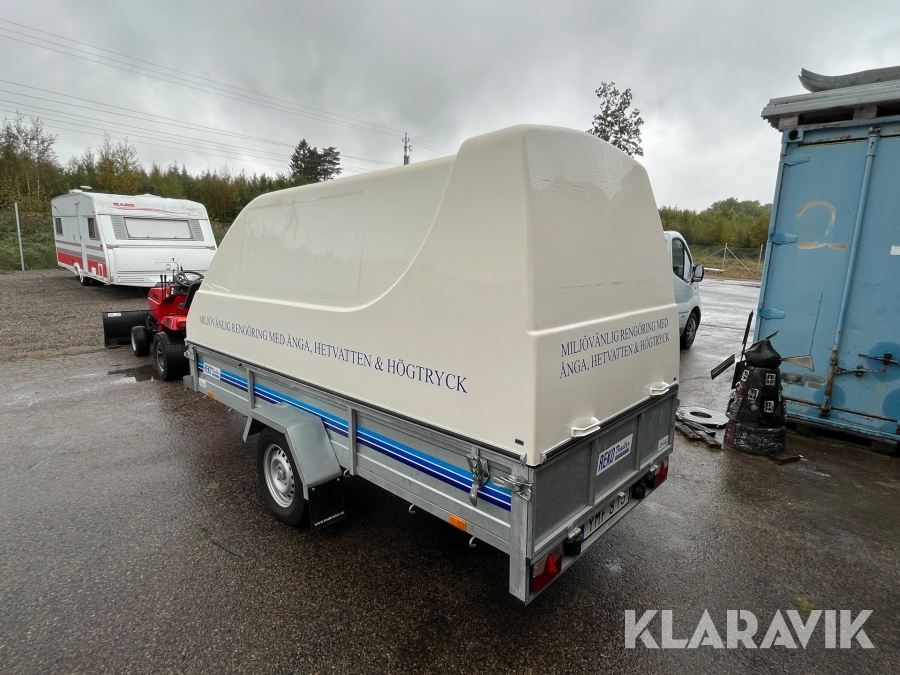Hetvattentvätt Reno Hot Box 65 kW på personbilssläp Reko FF 4903