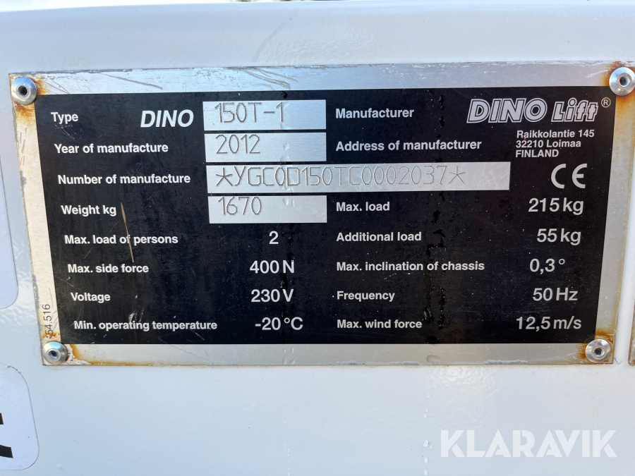 Släpvagnslift Dino 150T Arbetshöjd 15m