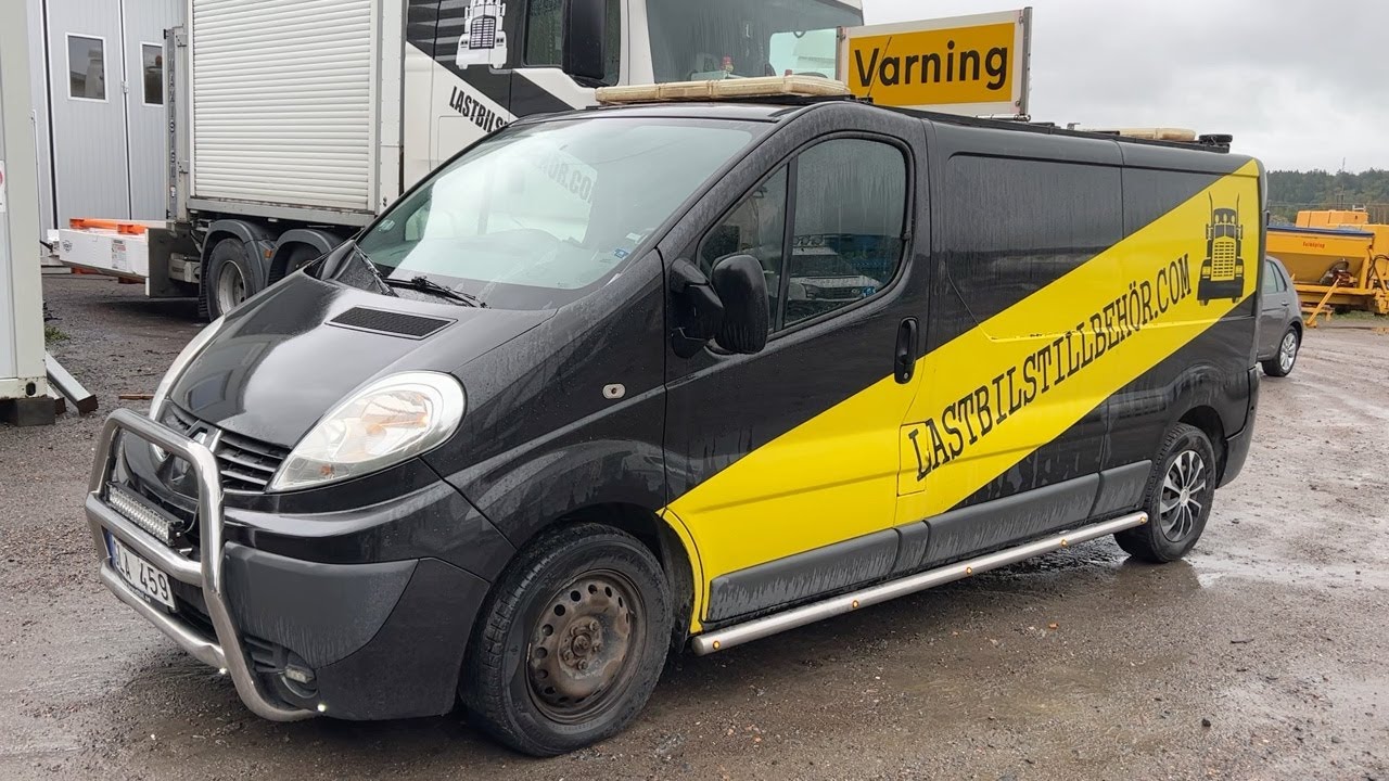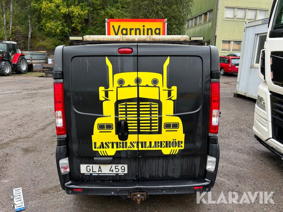 Skåpbil Renault Trafic med varningsskylt