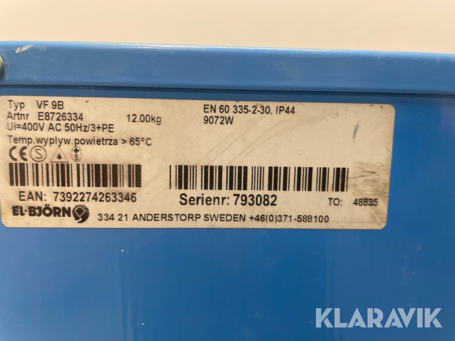 Varmluftsfläktar El-Björn VF9B