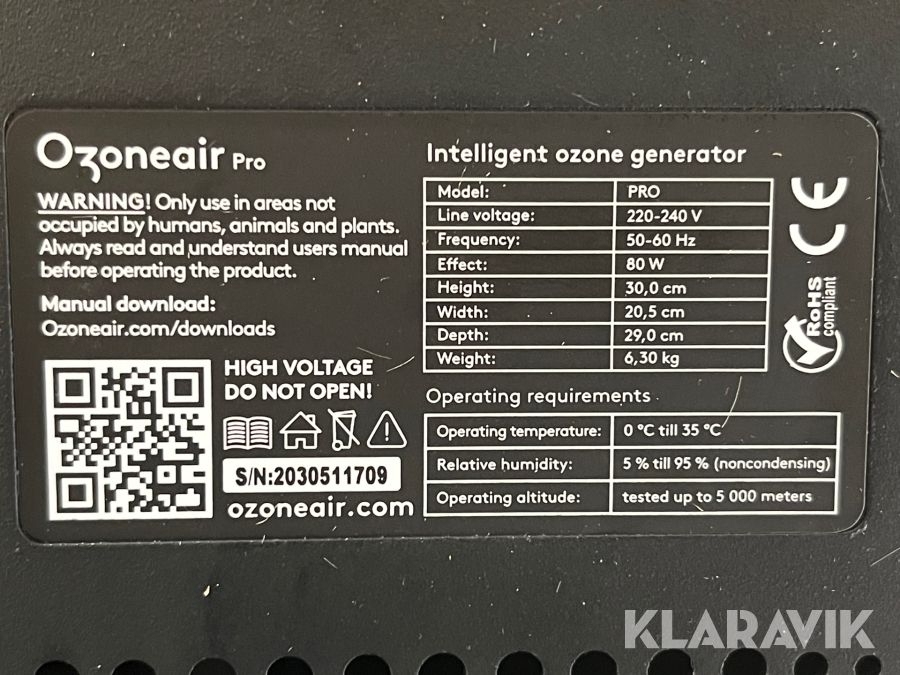 Ozonemaskin Ozoneair PRO Clean 120
